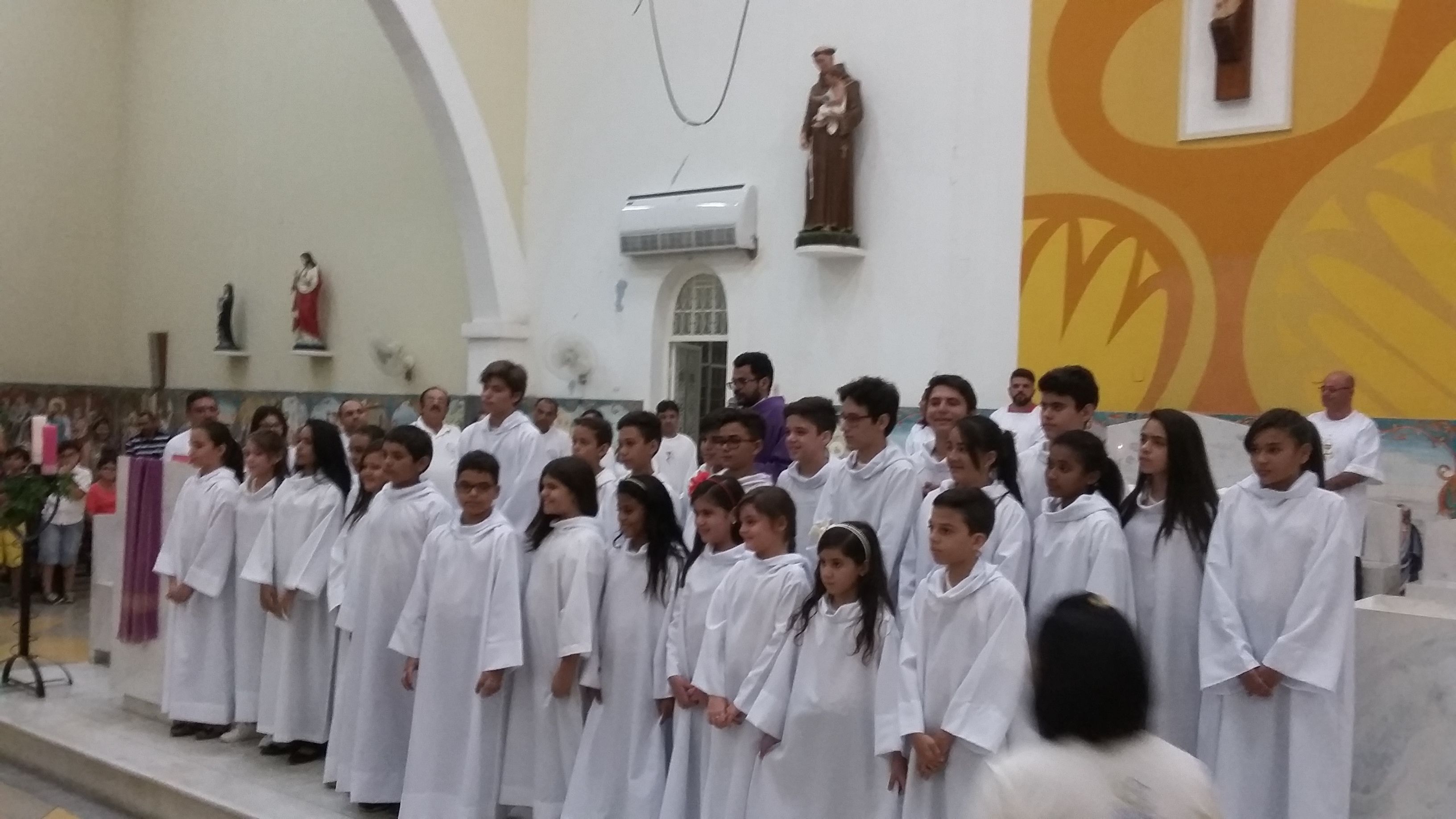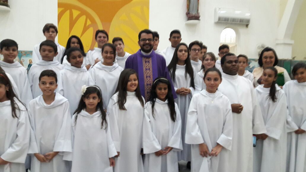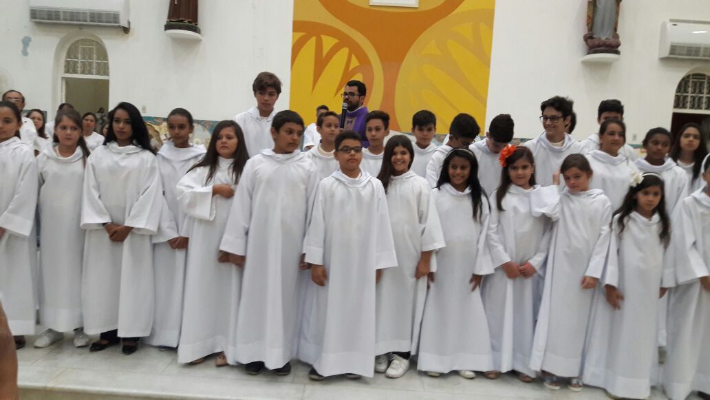 A noite de 27 de Novembro de 2016, 1º domingo do Advento foi escolhido para a investidura dos 36 novos coroinhas da comunidade matriz de Santo Antônio, com a presença de familiares e amigos a Igreja Matriz ficou repleta de fieis para dar as boas vindas aos jovens que aceitaram ao chamado para servir ao reino de Deus. Com a Presidência de Padre Alixandre Pároco de Santo Antônio a celebração da santa missa contou com a presença da coordenadora Inalda, do formador Alex e demais seminaristas e todo povo de Deus. Logo após a homilia deu-se inicio ao rito de investidura dos novos coroinhas que é menino ou menina, que nas igrejas exerce o papel de acólito nas funções litúrgicas. O Acólito é instituído para servir ao altar e auxiliar o sacerdote e o Diácono. O coroinha ajuda a missa, ele não é apenas um enfeite. Ele tem uma função importante que é a desempenhar um ministério, um serviço importante.