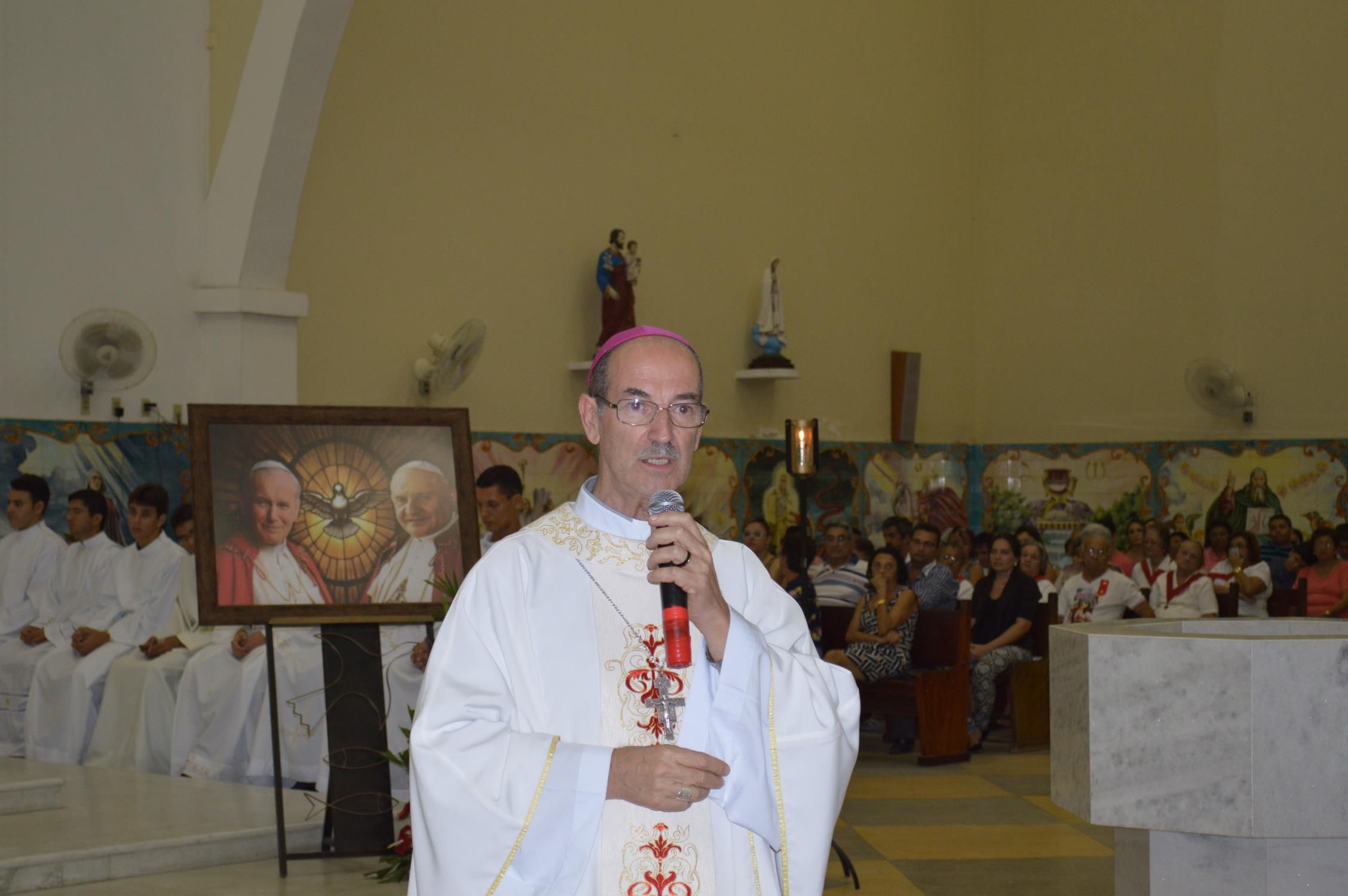 Dom Egídio - Realmente eu não conhecia a Festa de Santo Antônio, nem conhecia a Paróquia Santo Antônio em Patos, embora sempre tenha ouvido falar. Faz muito tempo que moro aqui perto, morei em São José do Egito, Santa Terezinha, mas não conhecia pessoalmente esta Paróquia. Fiquei impressionado pela Matriz cheia, como vi hoje à noite, cantando, rezando, participando muito bem. Percebi que tudo que o Pe. Alixandre me contava, corresponde mesmo a verdade, que aqui é uma Paróquia muito viva e dinâmica. Estou vendo agora aqui, no Pavilhão da Festa, uma grande animação, muitas pessoas servindo, se colocando a serviço do sucesso da Festa, acho isso um outro sinal de que a Comunidade é viva, é muito rica de pessoas disponíveis. Eu acho que é um sinal muito bom, eu fiquei encantado com o que eu ouvi e estou vendo ainda hoje, nesta noite na Festa de Santo Antônio aqui em Patos.