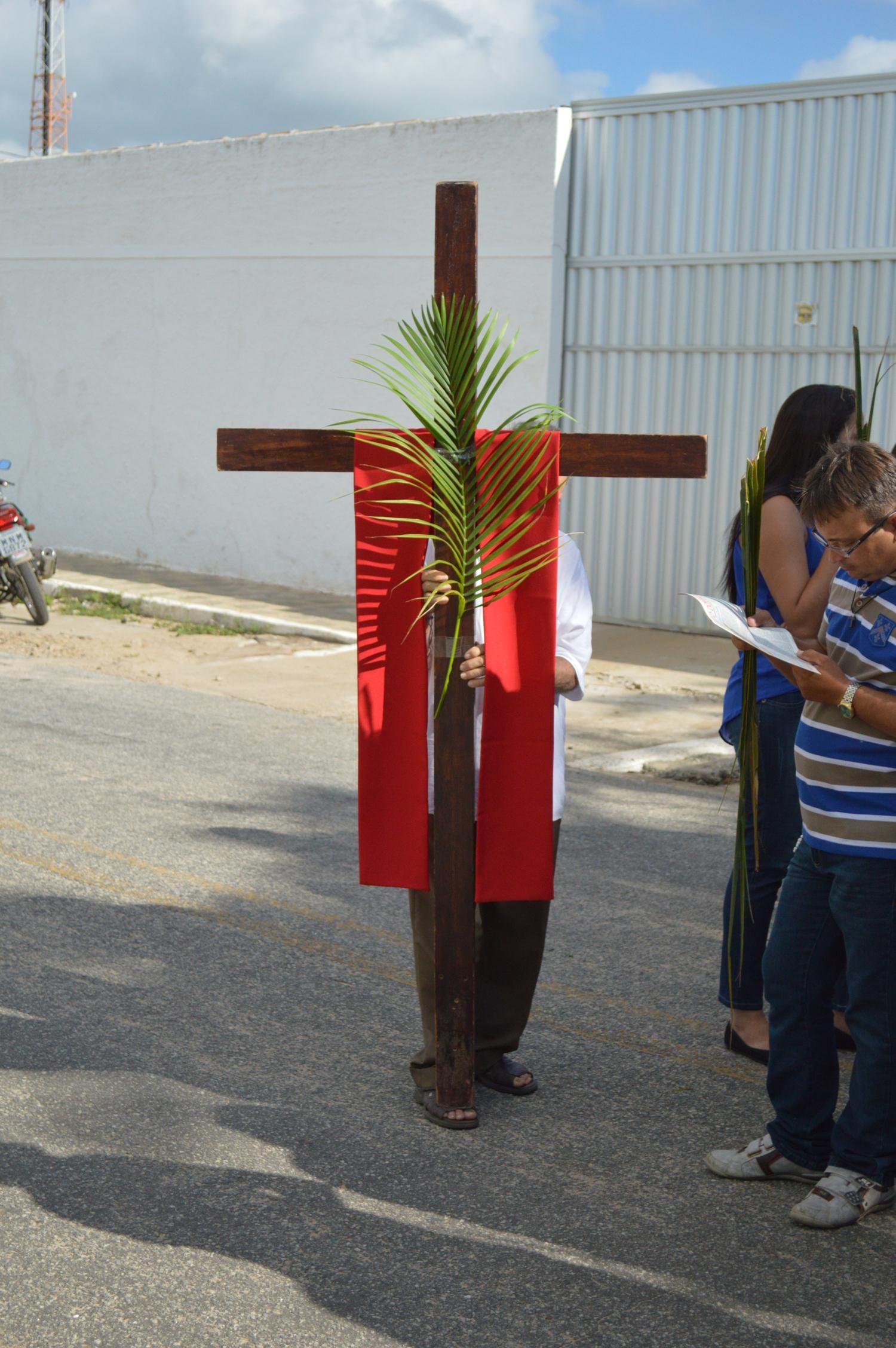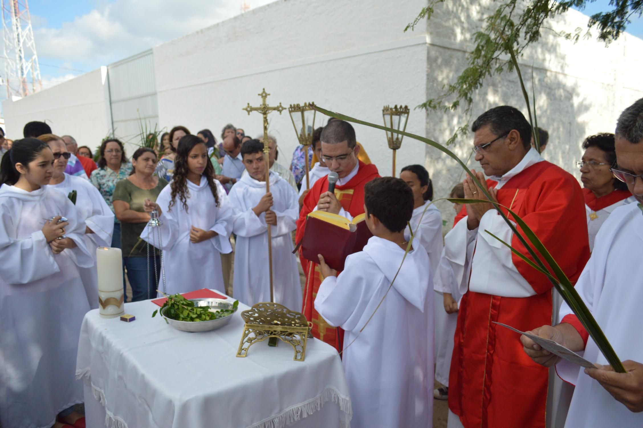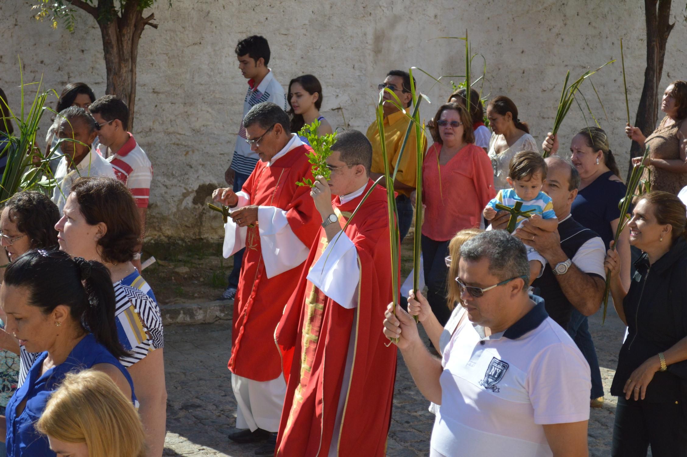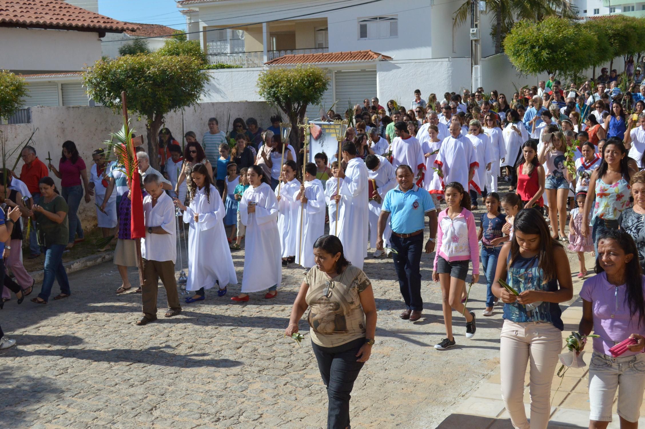 Como de costume, a celebração teve início na praça conhecida por Praça de Perequeté, onde foi proclamado o evangelho e dado a bênção dos ramos.
