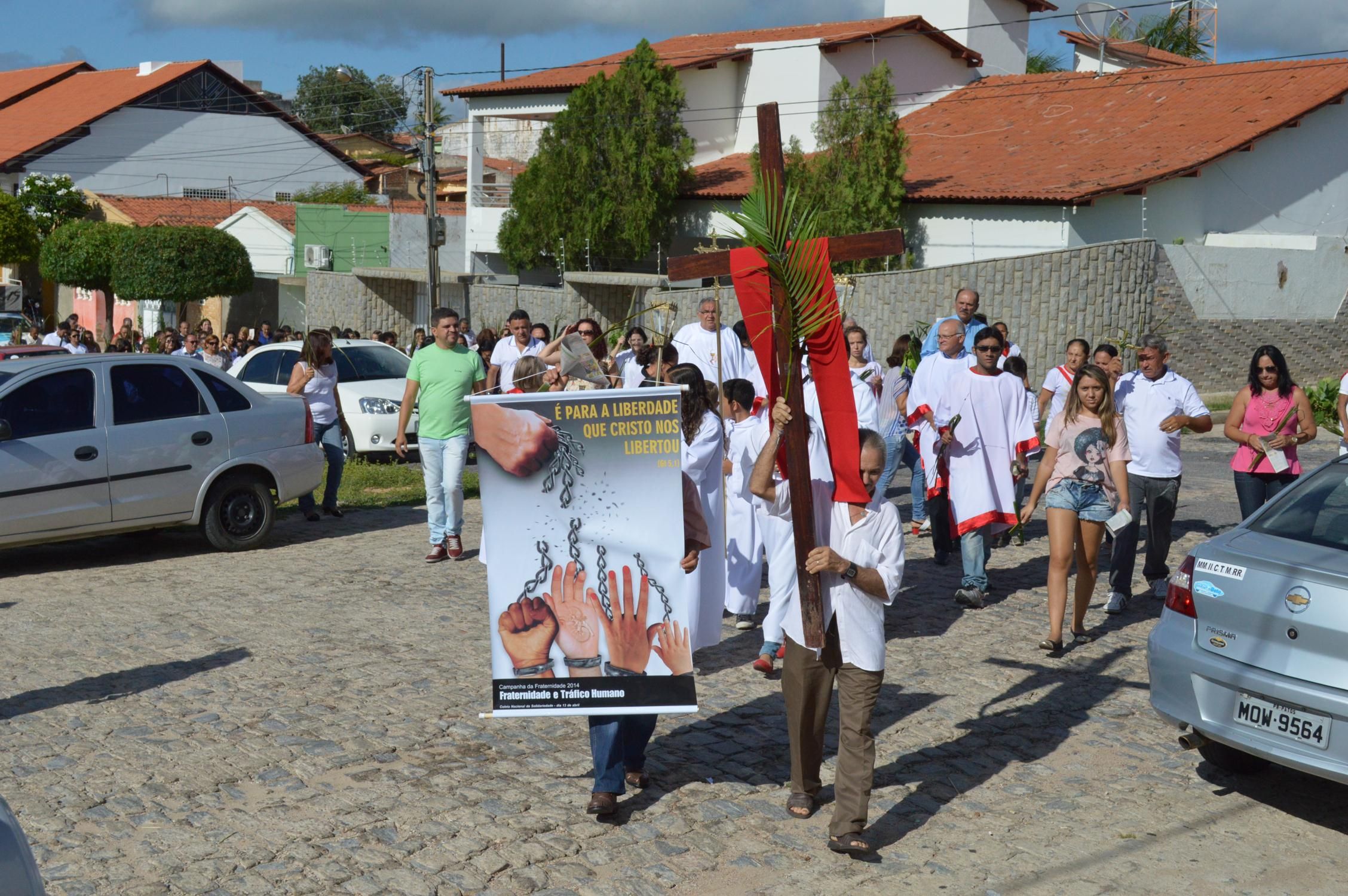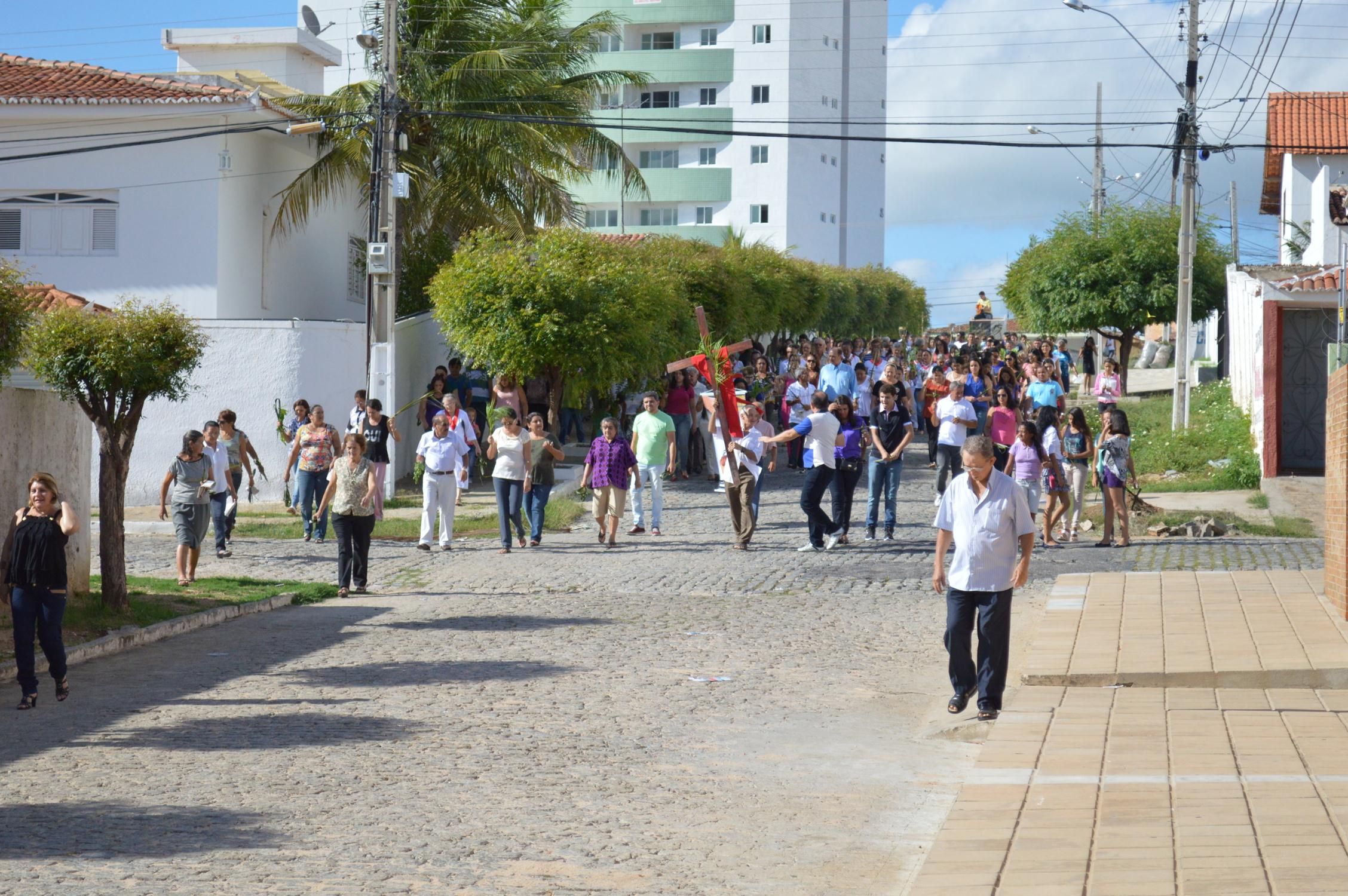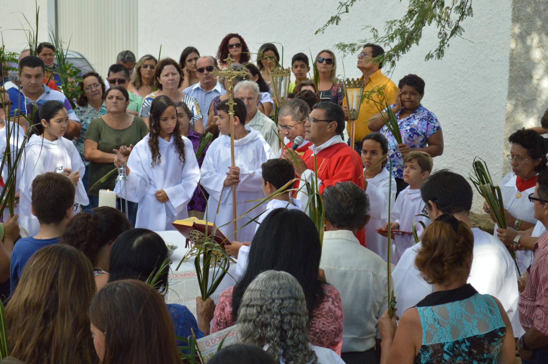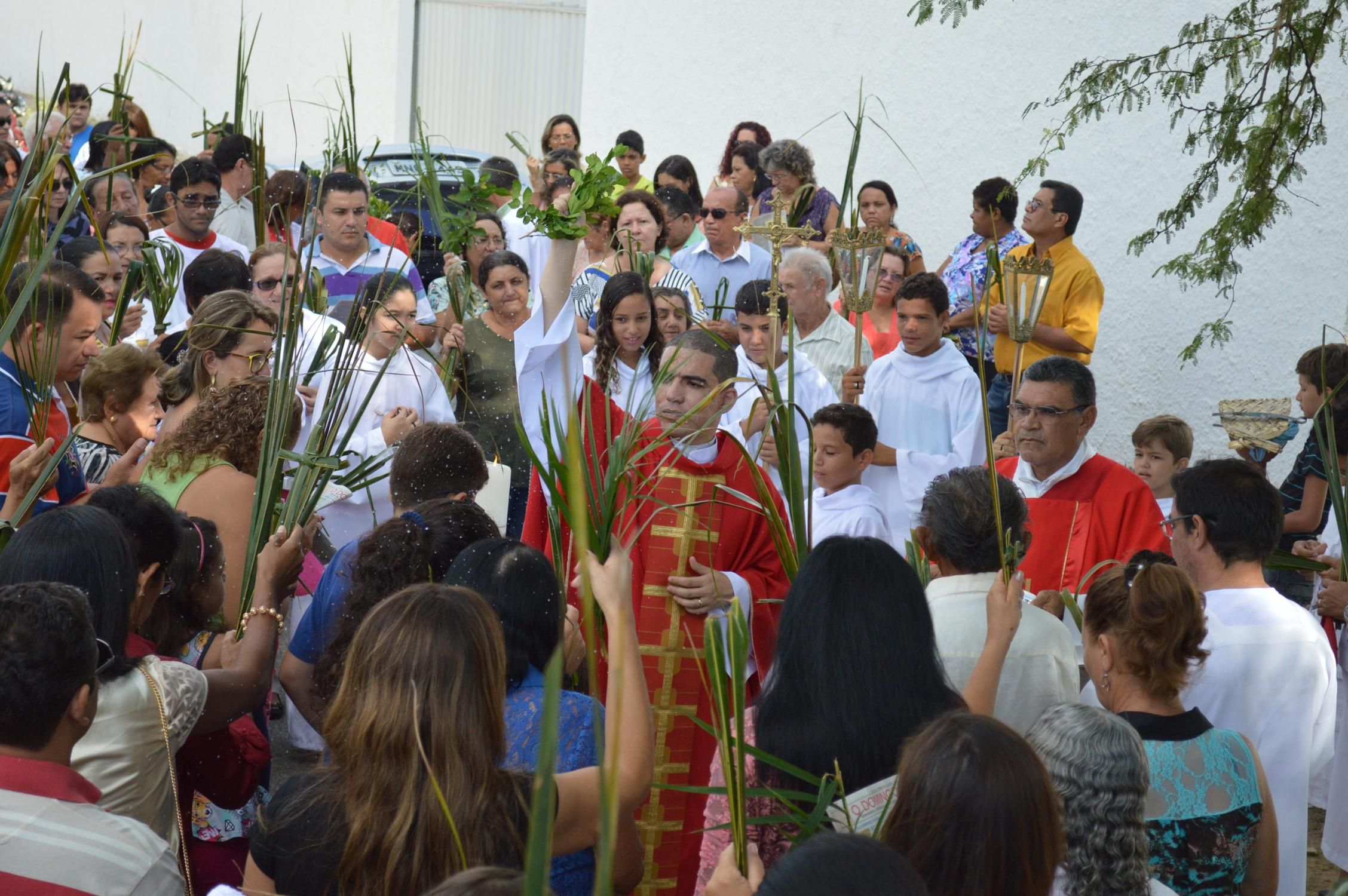 Como de costume, a celebração teve início na praça conhecida por Praça de Perequeté, onde foi proclamado o evangelho e dado a bênção dos ramos.