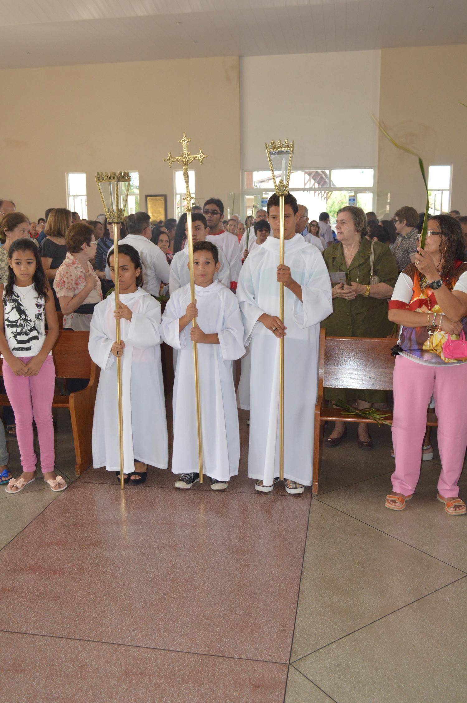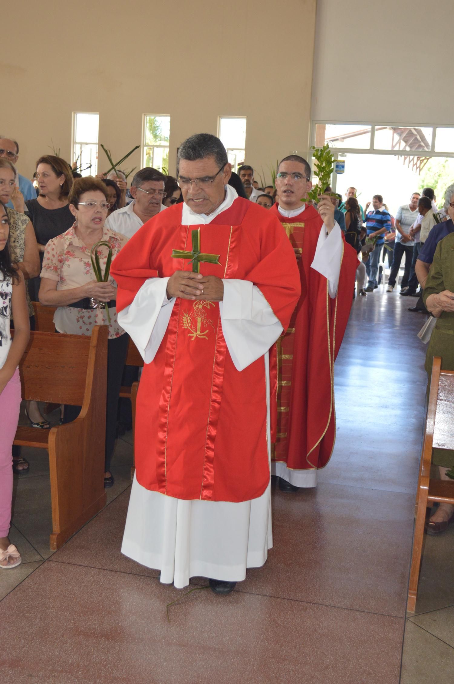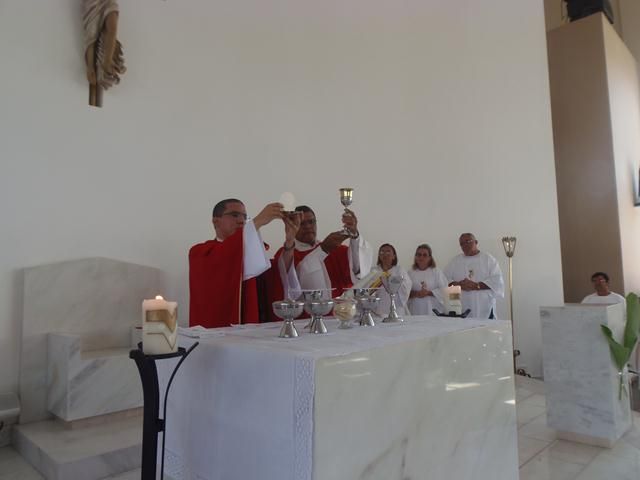 Em seguida, os fiéis saíram em procissão até a Igreja onde foi celebrada a santa Eucaristia presidida por Pe. Rodrigo e auxiliada pelo Diácono Roberto.