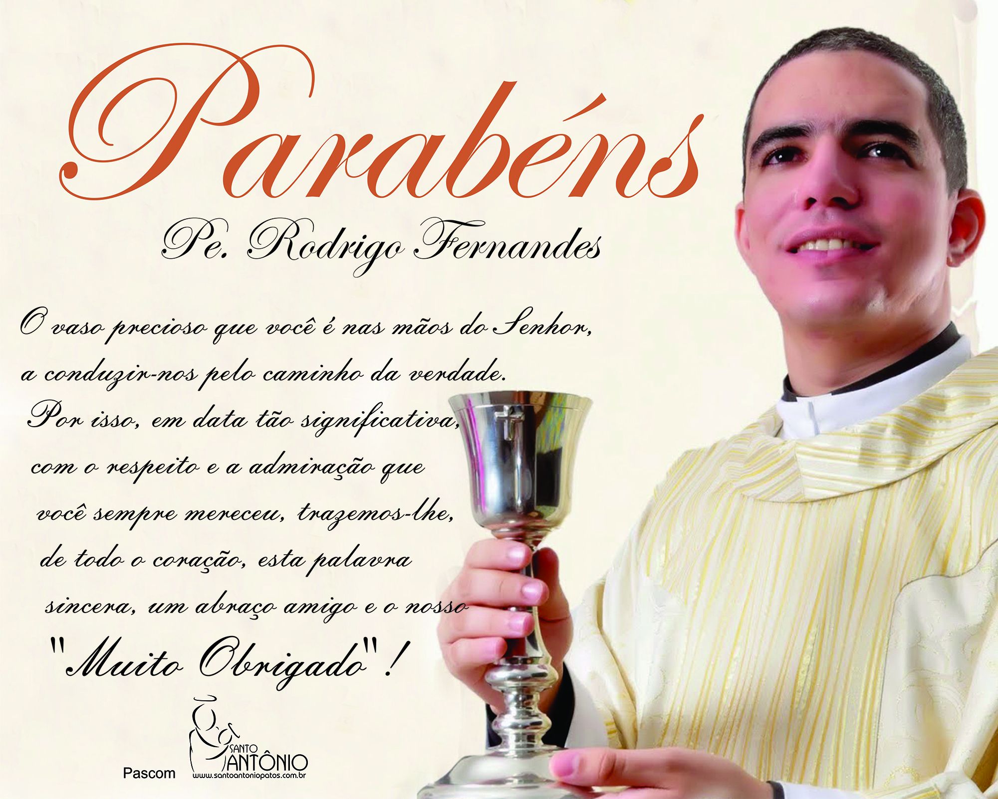 Parabéns para o Pe.Rodrigo,que Jesus te proteja te ilumine e te guarde,que Maria esteja sempre a frente de tudo que o Senhor almeja.Felicidades e muita paz interior.