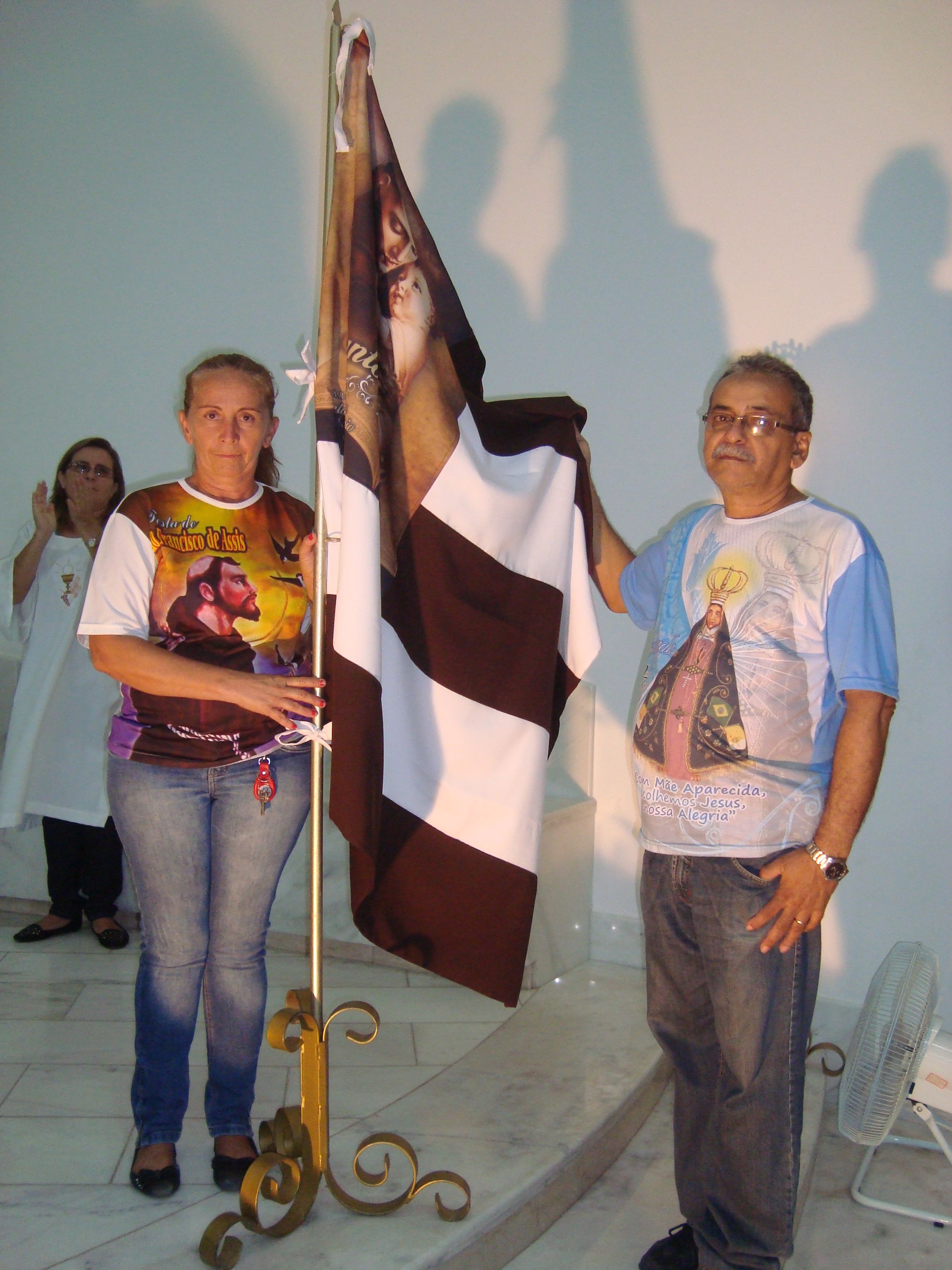 A Bandeira permanecerá na Comunidade de Nossa Senhora Aparecida até amanhã, dia 28, de onde será levada por uma equipe até a Comunidade de São José, na Rua do Meio.
