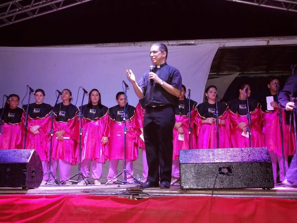 No final da celebração o Pe. Rodrigo falou um pouco para toda assembléia sobre o Coral Vozes da Liberdade, formado por detentas do presidio feminino de Patos. O citado coral fez uma brilhante apresentação após a Trezena no palco do pavilhão central da festa, onde foi bastante aplaudido.