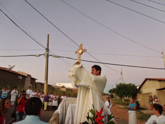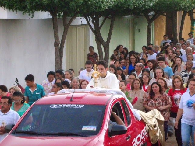 Após a Missa houve a procissão do Santíssimo pelas ruas do bairro com a presença de muitos fiéis. Foram concedidas quatro bençãos, sendo a última em frente a Igreja, na qual o Pe. Leonardo pediu que todos agradecessem a Deus pelas bençãos já recebidas e por todas as graças que Deus derrama sobre nós a cada dia.