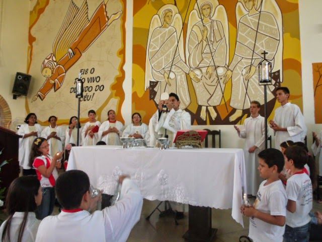 A Comunidade Nossa Senhora das Neves celebrou nesta quinta-feira, 19 de junho, a Solenidade de Corpus Christi no Conjunto Bivar Olinto. A Celebração foi presidida pelo Pe. Leonardo Henrique e contou com a presença de todos os Coroinhas e Ministros Extraordinários da Comunhão. O Pe. Leonardo fez uma explanação do que realmente é a Eucaristia e o que significa em nossa vida de cristão o zelo que devemos ter, principalmente quando estamos diante do Santíssimo, \\\"Pão vivo descido do Céu\\\" que veio para nos alimentar e salvar.