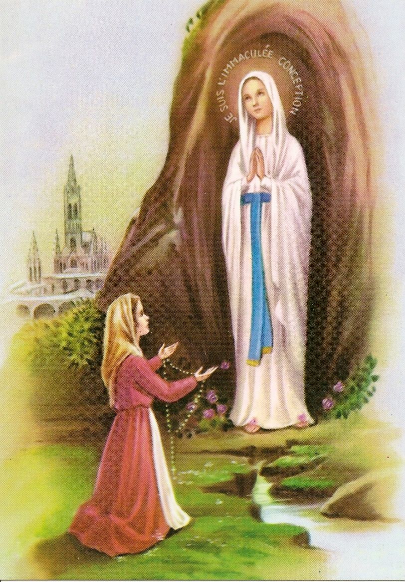 Devoção com origem nas aparições de Nossa Senhora numa gruta do vilarejo de Lourdes (França). Em 11/02/1858, a Santíssima Virgem apareceu à jovem Bernadete, enquanto recolhia lenha. Ela viu uma luz na gruta e uma menina, pequena como ela, vestida de branco, com uma faixa-azul em sua cintura e rosário nas mãos. A Virgem pediu oração e penitência pela conversão dos pecadores e convidou Bernadete a cavar o chão e beber a água da nascente encontrada. Essa água foi dada a muitos doentes e curas foram noticiadas. Em 25/03, a Virgem lhe revelou: "Eu sou a Imaculada Conceição". O dia 11/02 foi proclamado por João Paulo II como Dia Mundial do Enfermo.