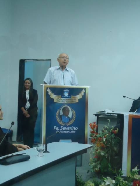 Ao fazer uso da tribuna a vereadora Claudia Leitão do PR, autora da Lei que conferiu o título ao padre Severino destacou a importância do sacerdote por tudo o que ele fez pela evangelização em toda a Diocese, particularmente pela cidade de Patos.