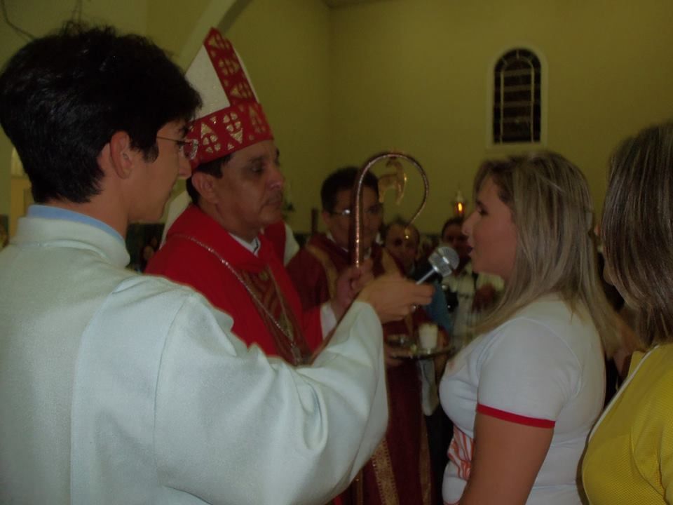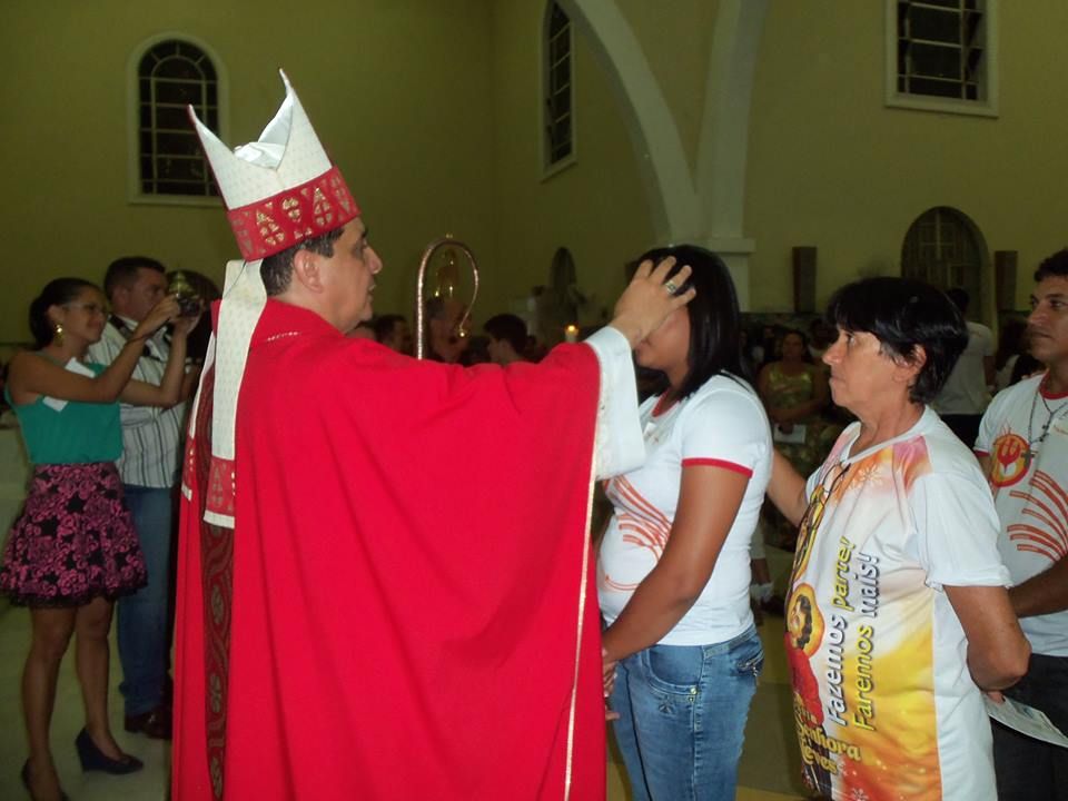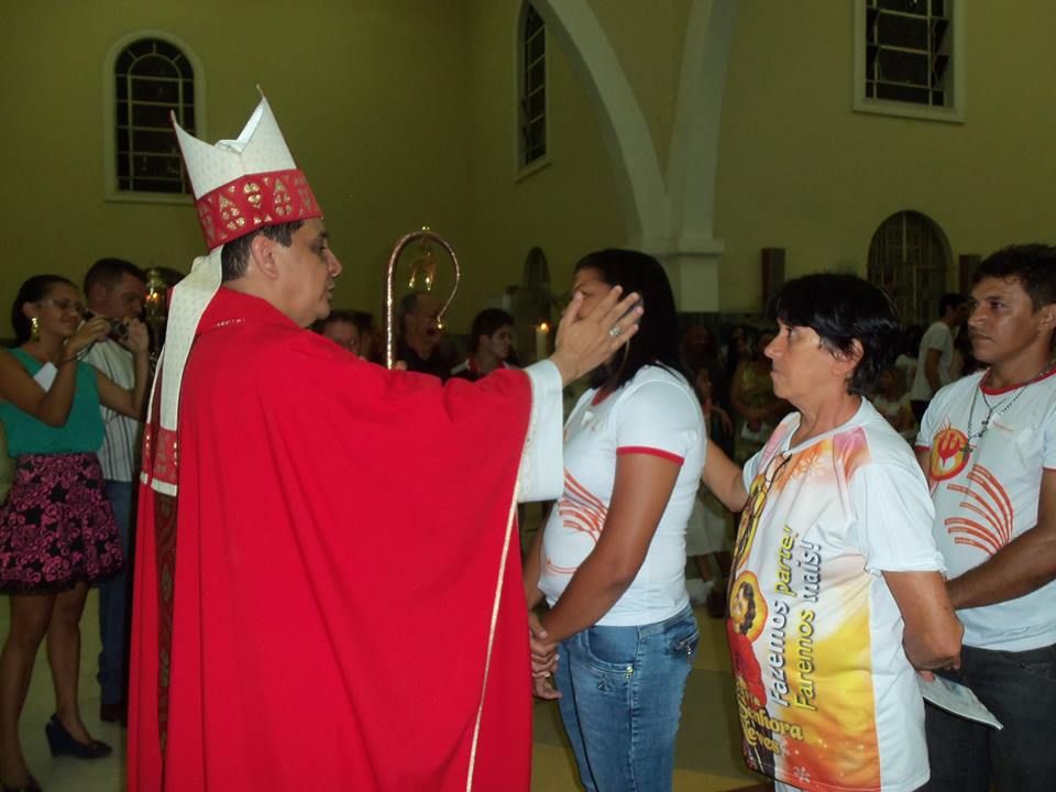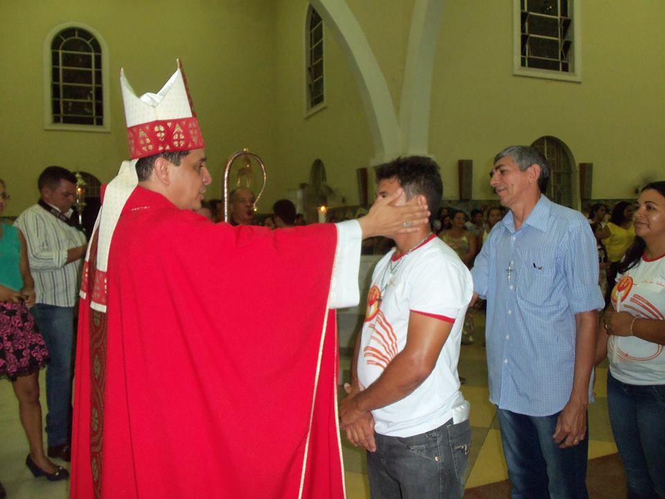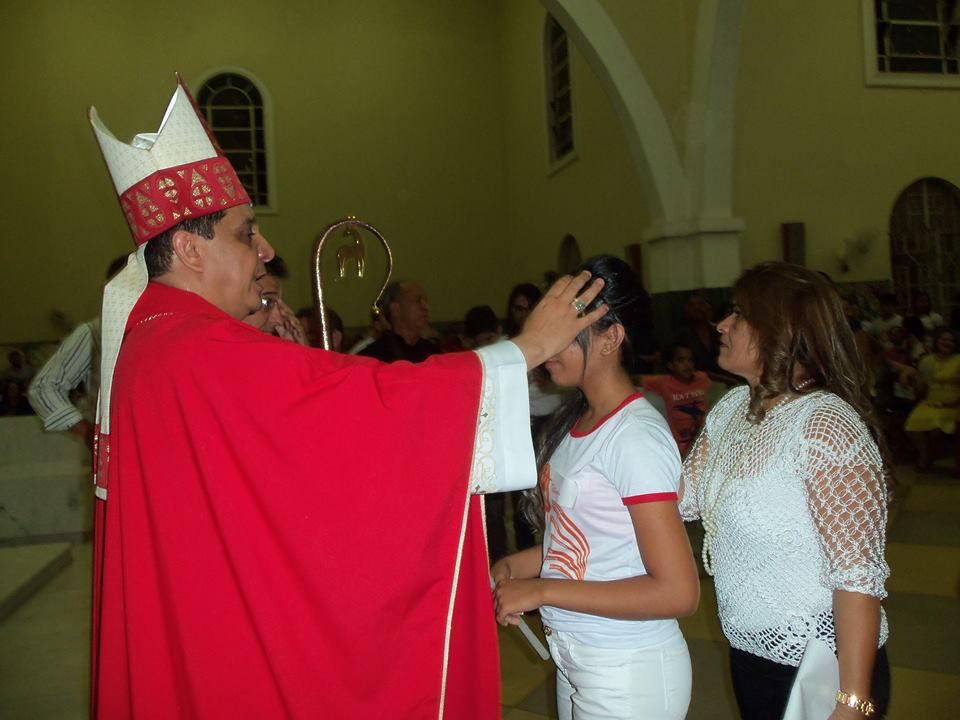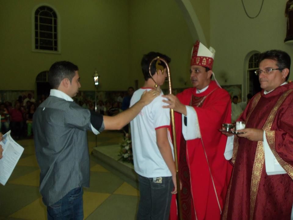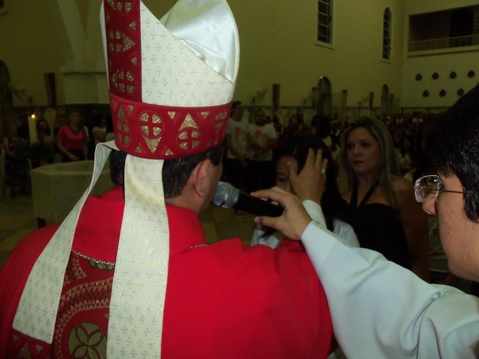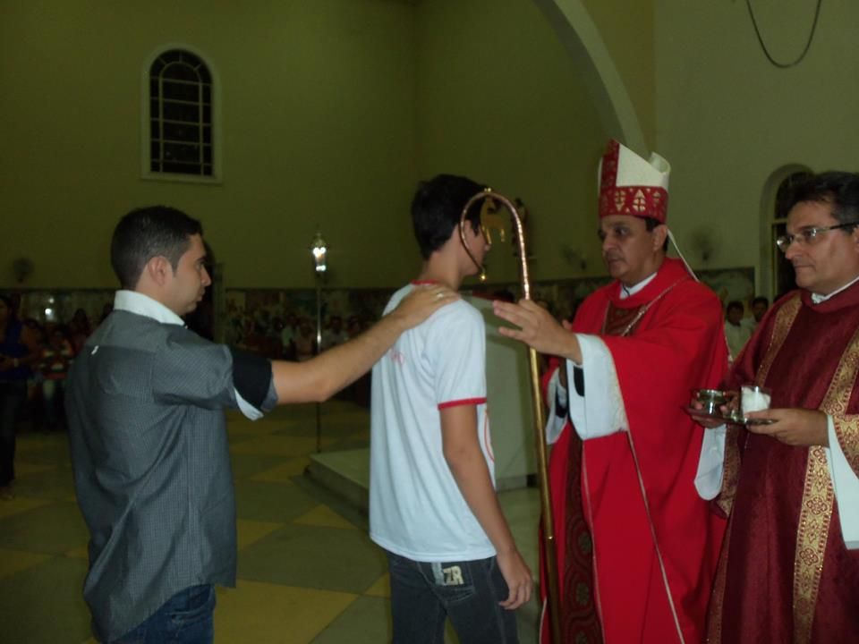 Quando a homilia terminou, deu-se inicio o rito de confirmação com os jovens fazendo a renovação das promessas do batismo e, logo em seguida, o nosso Bispo Diocesano Dom Eraldo assinalou na fronte de cada um dos jovens o sinal da cruz, com o Santo Óleo da Crisma, ao final da Missa Dom Eraldo agradeceu a Pastoral Crismal de Santo Antônio pelo empenho dedicado a evangelizar os jovens durante o ano.
