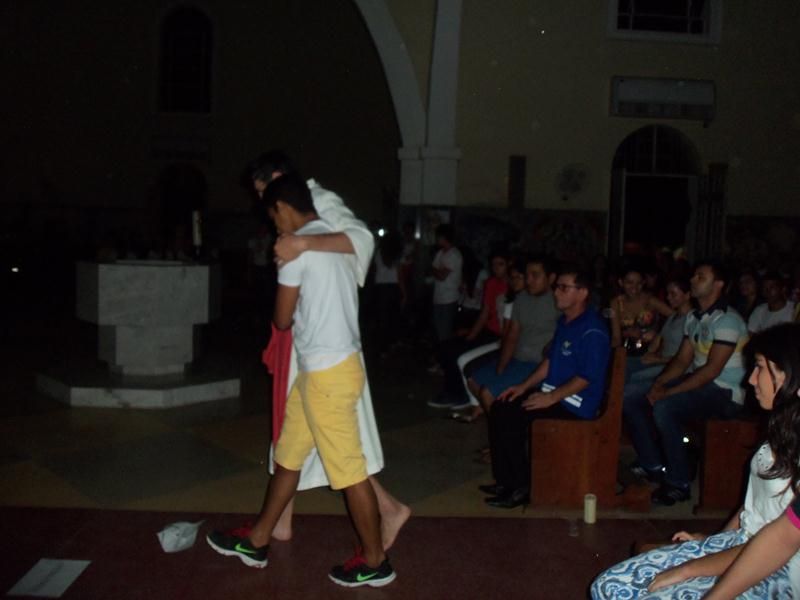 Com a igreja toda preparada para o momento, jovem vindos das comunidades que compõem a paróquia. Um grande louvor conduzido pelo Ministério de Música Sacrário Vivo da RCC de Patos deu inicio a 1ª Noite da Juventude, logo após o momento de louvor, o setor de juventude preparou para todos os jovens uma pequena dramatização da peça do filho prodigo que comoveu não somente os jovens mas todos que estavam presentes na igreja, depois desse momento marcante, todos ficaram atentos a partilha da palavra que foi proferida pelo coordenador do Ministério Jovem da RCC de Patos, mas não poderia fechar melhor a noite sem ter a presença de Nosso Senhor Jesus Cristo na Hóstia Consagrada, Pe. Leonardo conduziu o Santíssimo Sacramento ate o altar para a benção solene que todos os presentes tiveram a honra de receber.