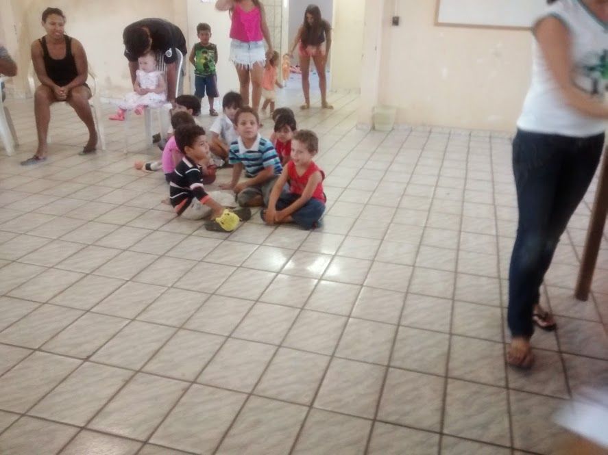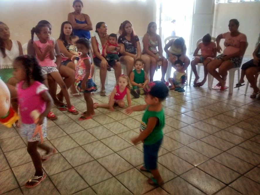 Inicialmente foi feita a acolhida a todos e, em seguida, Carmelita fez um momento de espiritualidade e evangelização com as mães. Após esse momento, cada líder foi fazendo a pesagem das crianças, enquanto isso, as demais crianças se divertiam na brinquedoteca, acompanhadas pelo olhar carinhoso e atencioso das líderes e das mães.