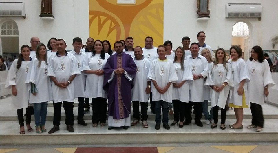 Aconteceu na noite de ontem dia 20 de dezembro 4º Domingo do Advento na Igreja Matriz de Santo Antônio a investidura dos novos ministros extraordinários da comunhão eucarista. No inicio da celebração Pe. Alixandre Paróco de Santo Antônio acolheu aqueles que serão investidos, logo após a homilia Pe. Alixandre chamou os escolhidos para o ministério de ministro da comunhão em uma breve explanação ele explicou aos escolhidos para o ministerio e a toda assembléia presente na igreja a importância do ministro extraordinário da comunhão dentro da igreja. Pe. Alixandre convidou toda a assembléia para juntos rezarem por aqueles que irão assumir a missão de ajudar na distribuição da sagrada eucaristia, que após a oração os novos ministros da comunhão foram convidados para ocuparem os lugares dos antigos ministros ao qual Pe. Alixadre agradeceu imensamente pelo tempo de disponibilidade e amor que durante esses anos contribuiram para o louvor e glória de nossa senhor.