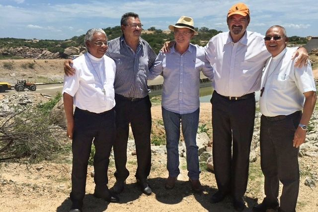 O presidente da Frente Parlamentar da Água da ALPB, deputado estadual, Jeová Campos (PSB) e o deputado Galego de Sousa acompanharam a comitiva que contou ainda com as presenças dos bispos de Natal, Dom Jaime, Dom Mariano, de Mossoró, Dom Antônio Carlos, de Caicó e Dom José Luiz, de Pesqueira, além de representantes do Ministério da Integração Nacional, DNOCS, INCRA, da senadora Fátima Bezerra e outros bispos da CNBB NE.