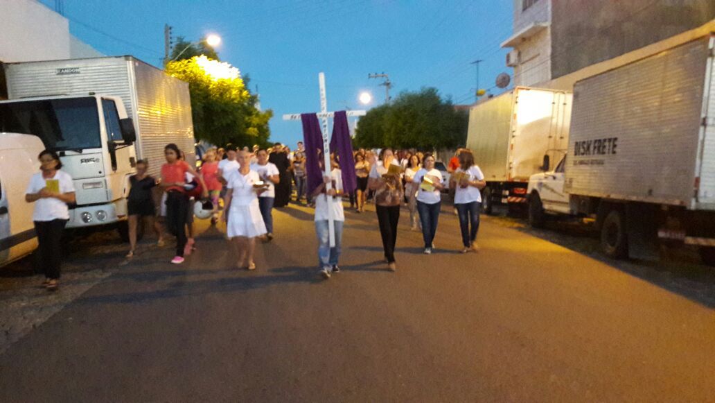 Logo cedo, às 05h da manhã, aconteceu a meditação da Via Sacra. Em todas as Comunidades um grupo de fiéis saiu da igreja indo até a Praça Dede Francisco, meditando as 14 estações. Ao chegarem à Praça, todos os grupos rezaram juntos a 15ª Estação.