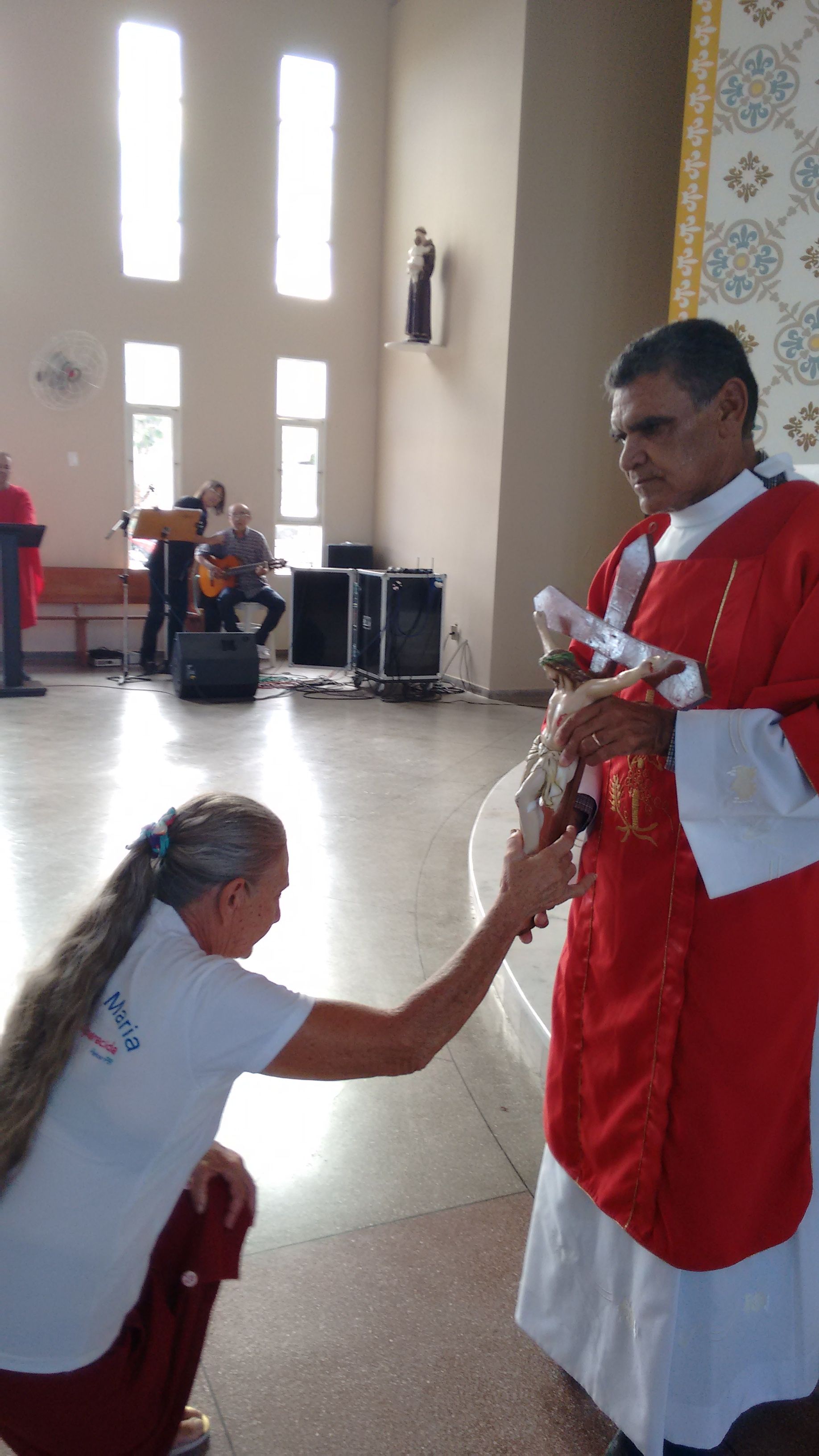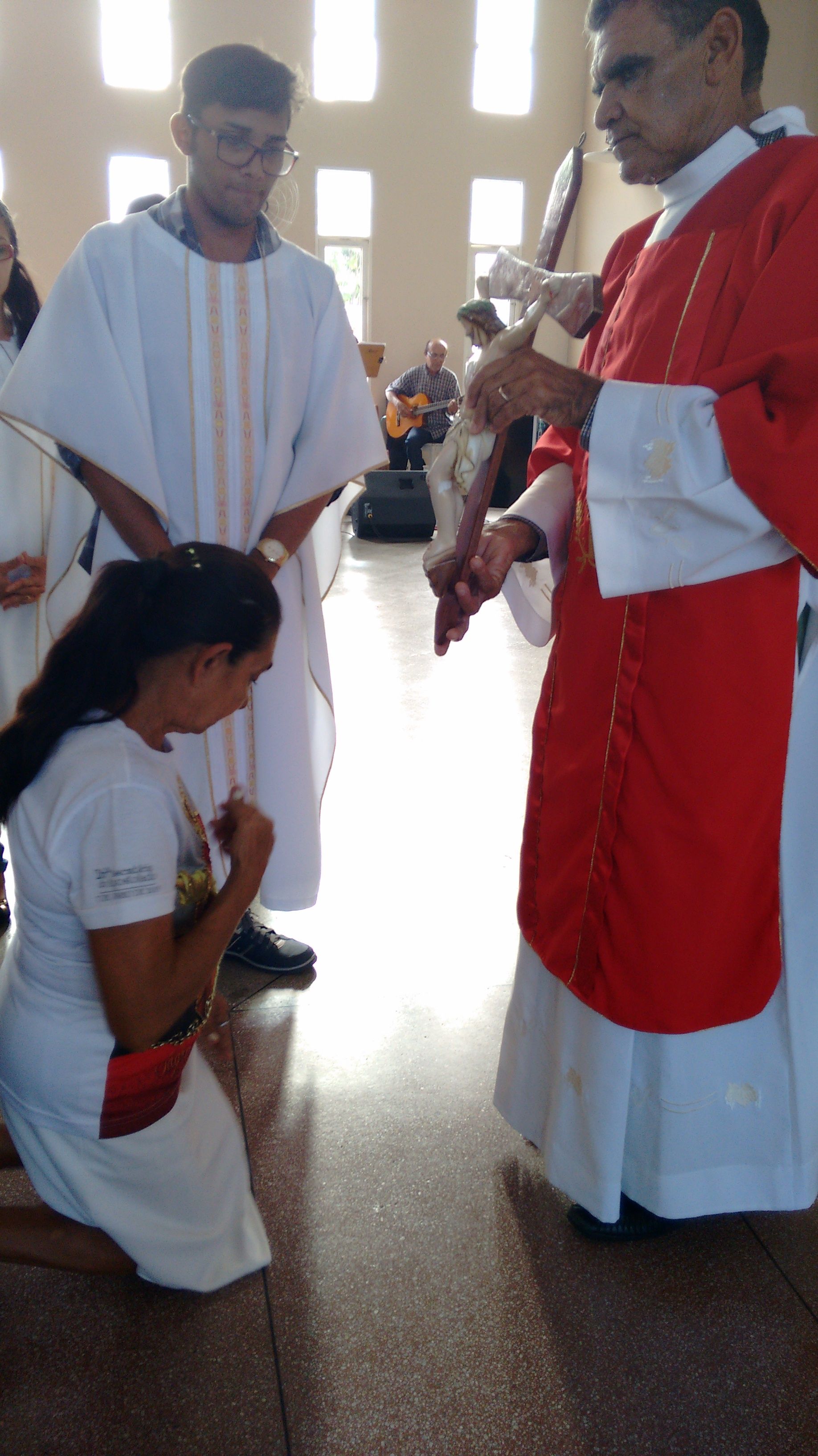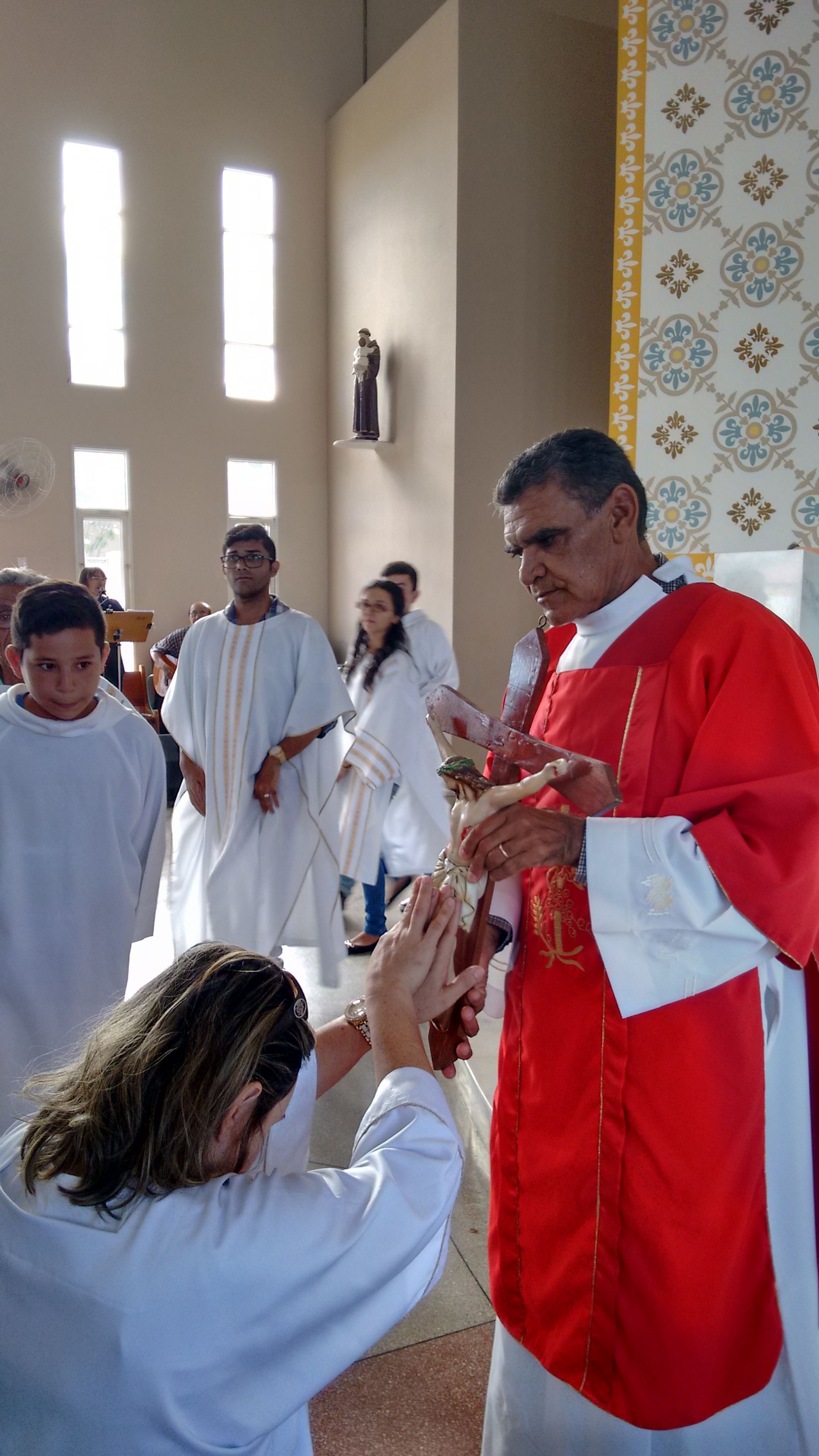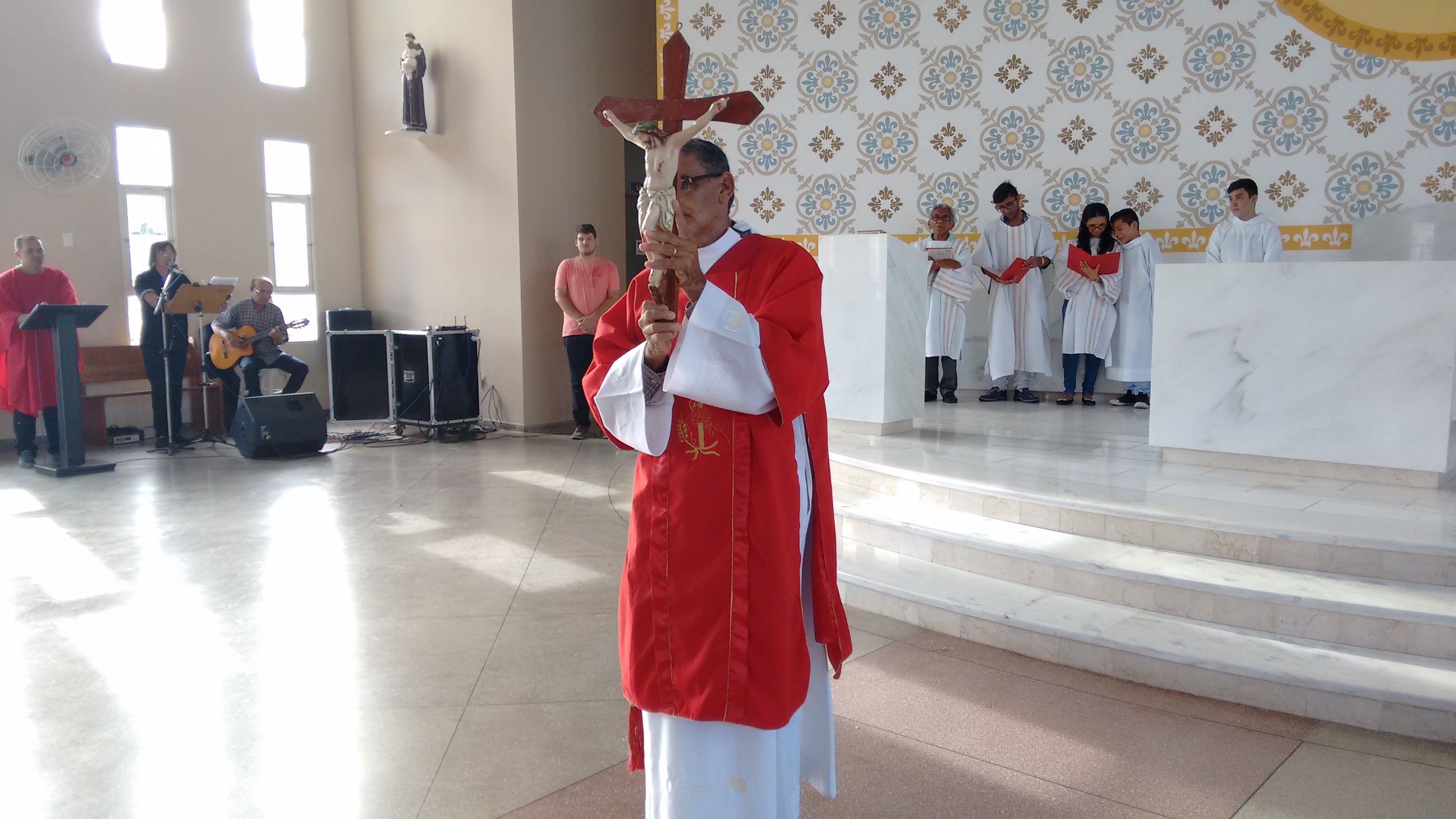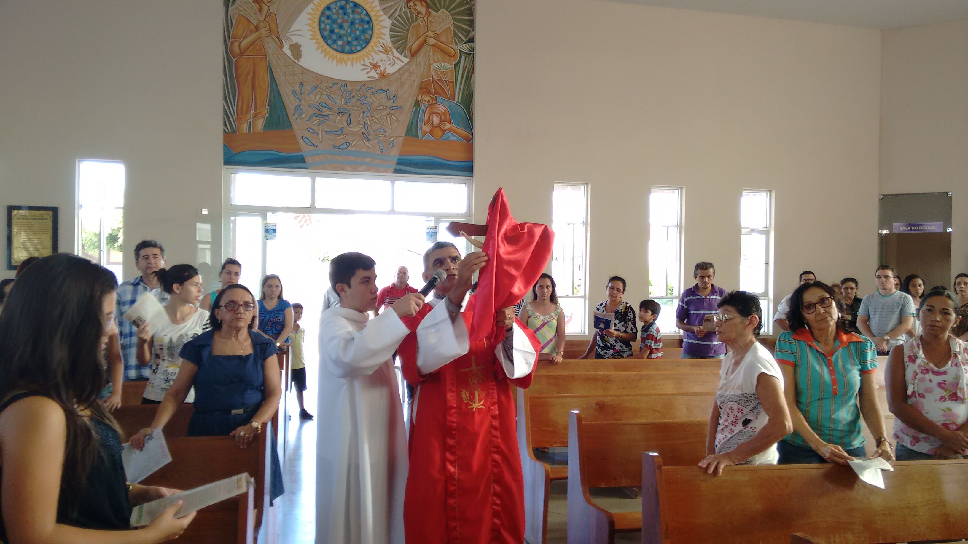 A Comunidade de Nossa Senhora Aparecida atendendo ao chamado, se reuniu, nesta Sexta-feira Santa, dia 25 de Março, para celebrar a Paixão de Cristo. O Diácono Roberto presidiu a celebração e, em sua homilia, diz: “hoje, celebrando o mistério da cruz, eu tenho que olhar cada passo, meditar sobre cada circunstância, meditar sobre cada instante dessa passagem para, dentro de mim, também refletir o que vai ser, o que vai dar continuidade, o que vai dar sentindo a minha vida. Naquela corrida até o calvário, cada passo que Jesus dava com aquele madeiro nas costas, Ele ia se lembrando de cada um de nós, Maria, Marta, José, Antônio, Severino... e ia salvando. Cada um dos nossos nomes Ele se lembra, porque Ele tem o nome de cada um de nós escrito em Seu coração”.