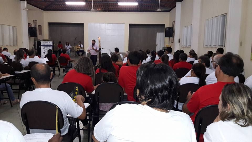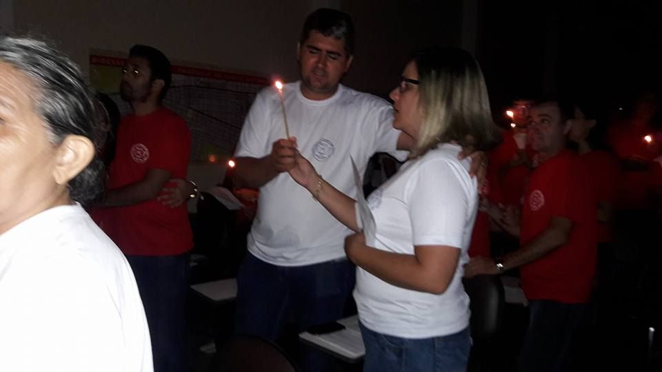 Houve um momento de dramatização, com a representação de duas famílias, onde uma ostentava a luz da riqueza material em suas vidas e a outra a valorização da oração e da presença de Deus na vida famíliar.