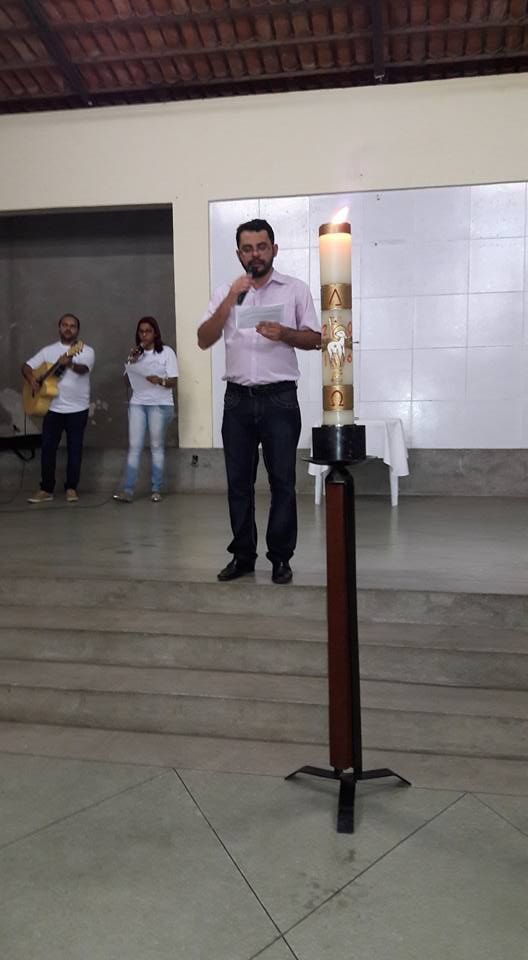 Foi um momento bonito de reflexão e meditação dirigido pelo Pároco Pe. Alixandre Soares, com o tema: “A Ressurreição”. Houve um momento torno do Círio Pascal, onde os casais acendiam uma vela, mostrando com isso, a importância da Luz que é Cristo, na vida da família.