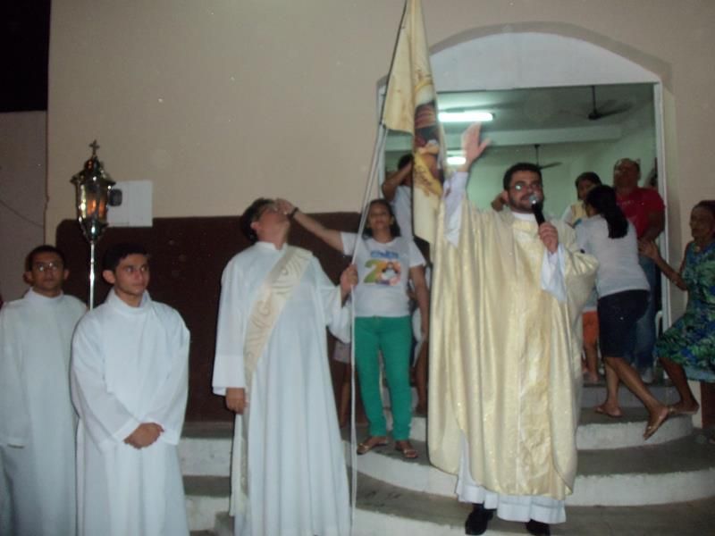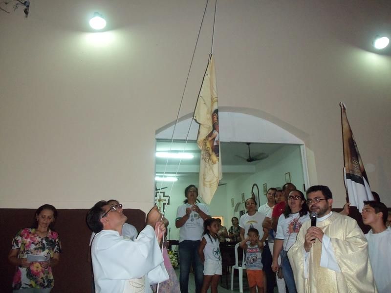 Com a participação de dezenas de fiéis devotos, a procissão com a imagem do santo padroeiro saiu da Praça da Liberdade, indo até a igreja, onde houve o hasteamento da bandeira e a Missa de abertura. Na oportunidade, ao chegar à igreja, o Pe. Alixandre lembrou a todos a importância de celebrar em honra do padroeiro, como um sinal para todos os moradores de que a Comunidade está em festa.
