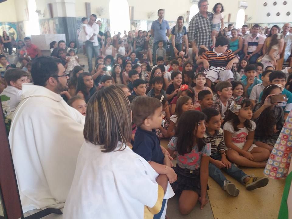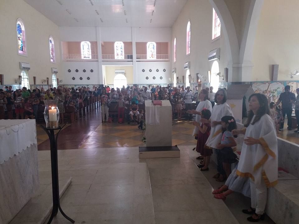 Neste domingo, 08 de Maio, dia da Ascensão do Senhor e também dia das mães a celebração foi bastante participativa com muitas crianças e uma significativa participação das mães.