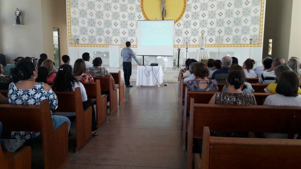 Após a celebração da Santa Missa, que deu inicio ao encontro, o Pe. Alixandre falou um pouco sobre Liturgia, focando os seguintes pontos: liturgia diálogo entre Deus e o ser humano; a importância das partes da missa; missa, coração da nossa fé; e o Credo como uma boa oração para fortalecer a fé do cristão católico.