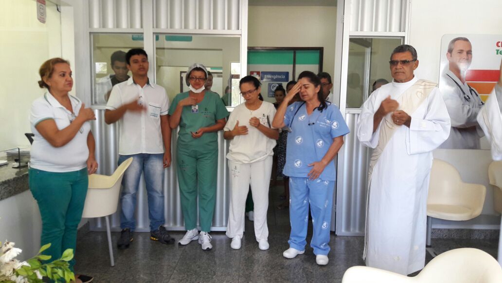 Momento de fé e devoção para diretores, médicos, enfermeiros e funcionários, em geral, daquela unidade de saúde. Momento de reflexão, oração e interseção por todos, pacientes e funcionários.