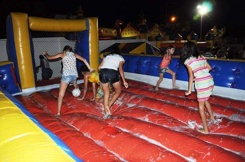 O brinquedo que fez mais sucesso foi o futebol de sabão. Diante do calor, brincar em um campo de futebol com água e sabão é sempre refrescante e divertido. As crianças fizeram filas para aproveitar todos os brinquedos infláveis a disposição do público infantil.