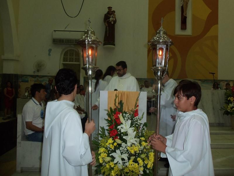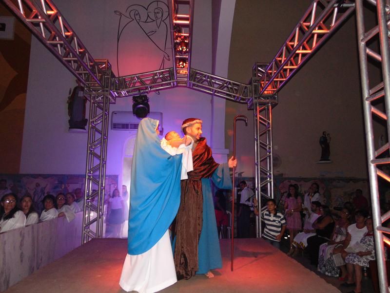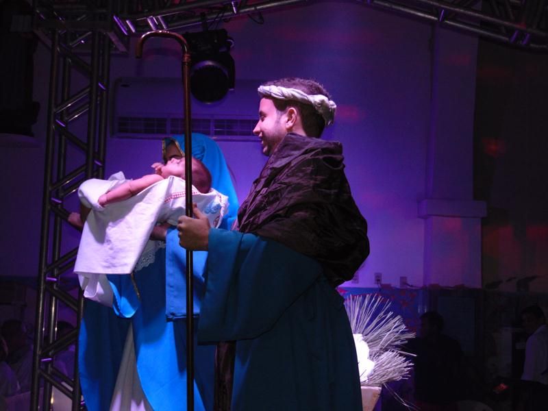 Aconteceu na noite de ontem dia 24 de dezembro na igreja matriz de santo Antônio, a missa solene da vigília do natal do senhor, missa presidida por Pe. Alixandre, onde a igreja ficou pequena para o grande número de fieis que vieram ver a participação dos jovens da nossa paróquia na missa, logo após a saudação do pe. Alixandre deu-se inicio a liturgia da palavra com as proclamações das leituras, no momento da proclamação do evangelho foi dramatizado com a participação de jovens da comunidade caracterizados com os personagens do evangelho, onde toda a igreja teve a oportunidade de vivenciar na prática em quanto o evangelho estava sendo proclamado no mesmo instante estava sendo encenado. Muitos dos fieis relataram a emoção de estar presente na missa desde ano aqui em Santo Antônio, outro momento marcante foi logo após a comunhão onde pe. Alixandre conduziu o menino jesus ao presépio, depois pe. Alixandre deu a benção solene a todos os presentes