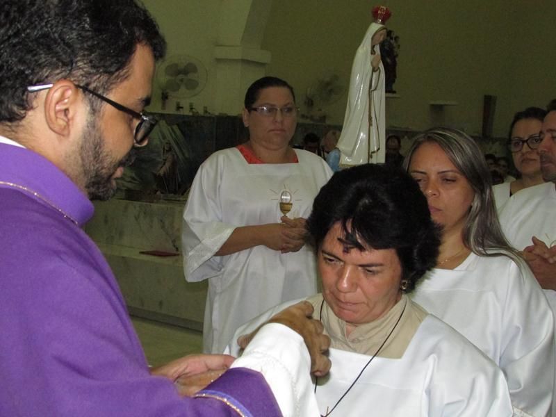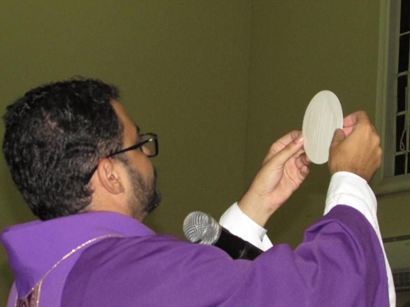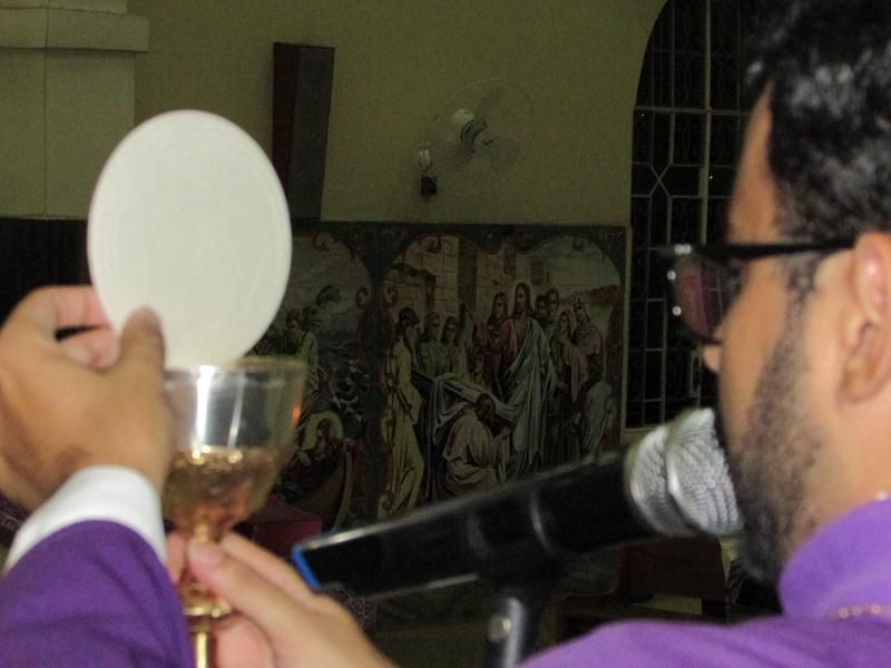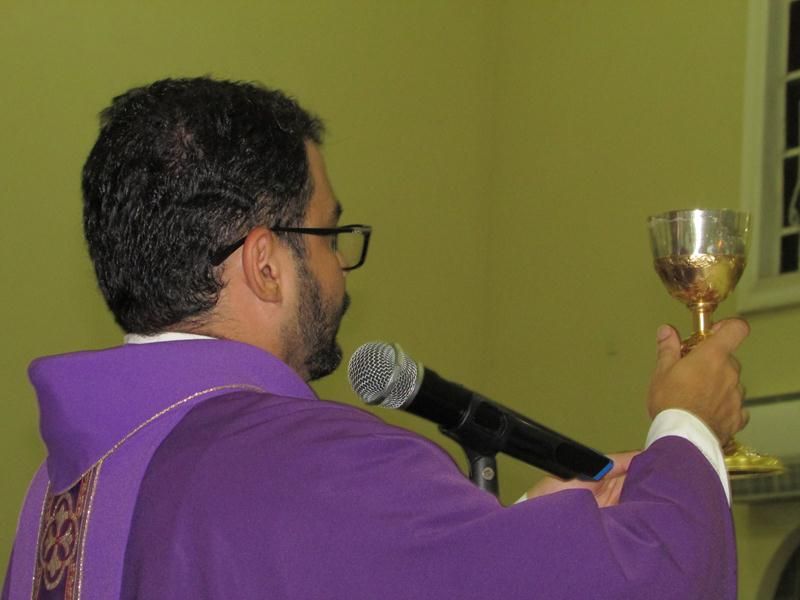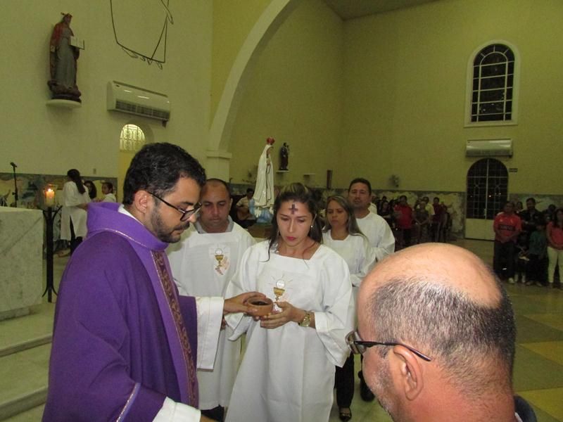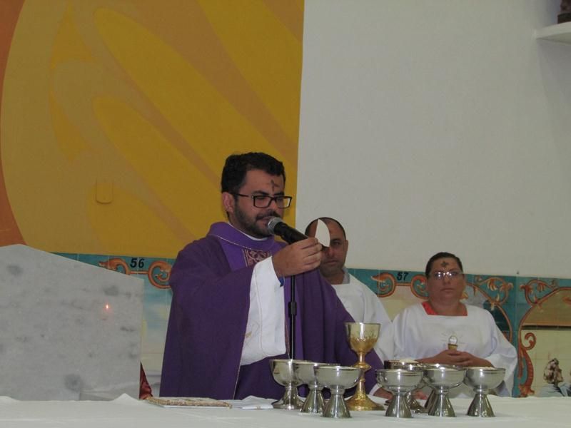 Depois da homilia Pe. Alixandre proferiu a oração e benção das cinzas que foram distribuídas a todos os presentes que logo após deu-se inicio ao rito eucarístico com a preparação do banquete eucarístico onde todos os que estiveram preparados puderam participar.