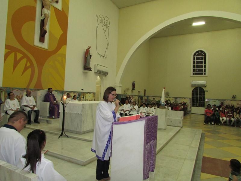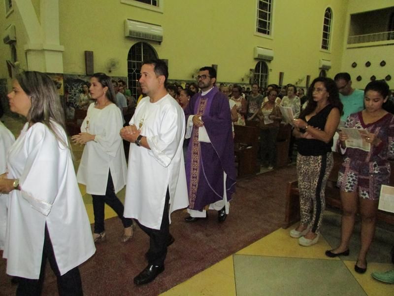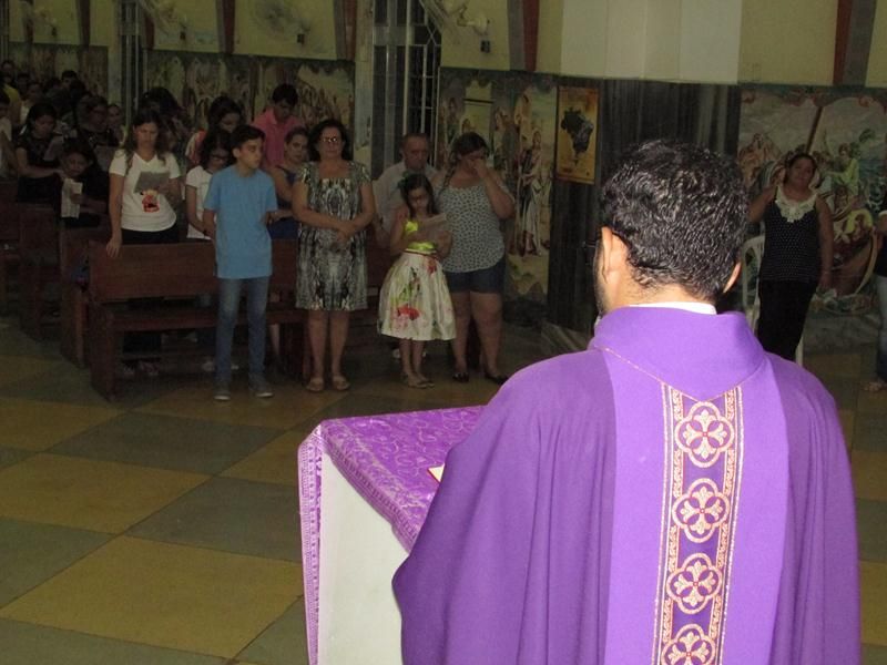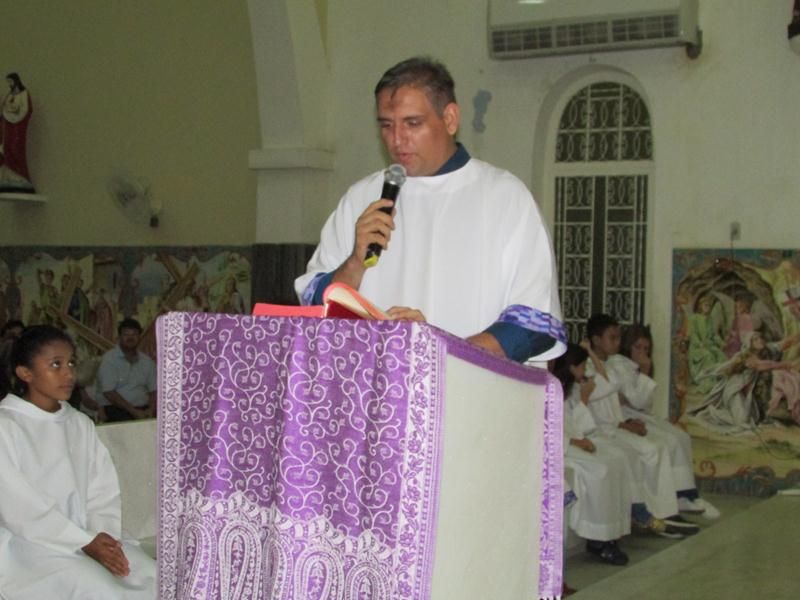 Pe. Alixandre Pároco de Santo Antônio presidiu a celebração, auxiliado pela equipe de liturgia que ajudaram a assembleia entrar num clima de penitência e oração.