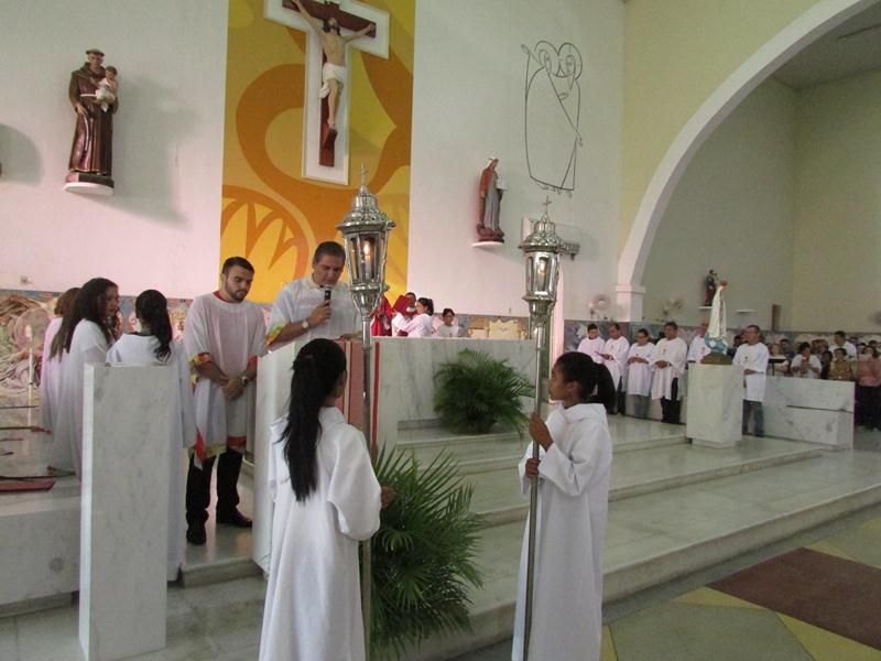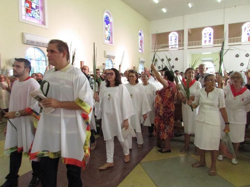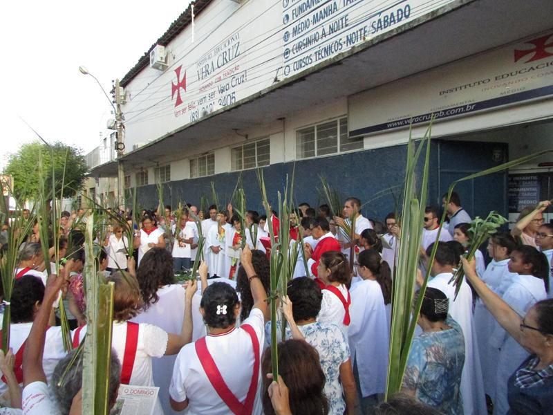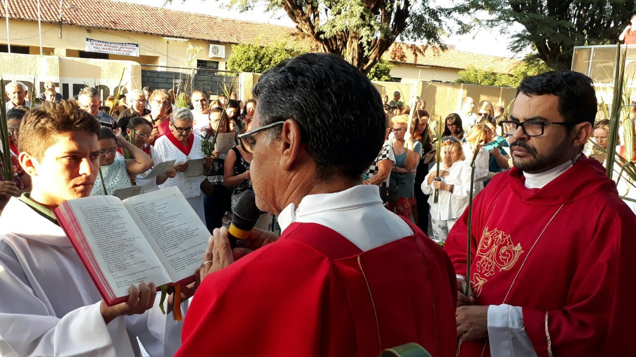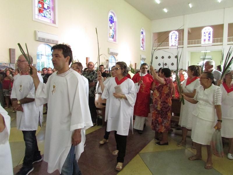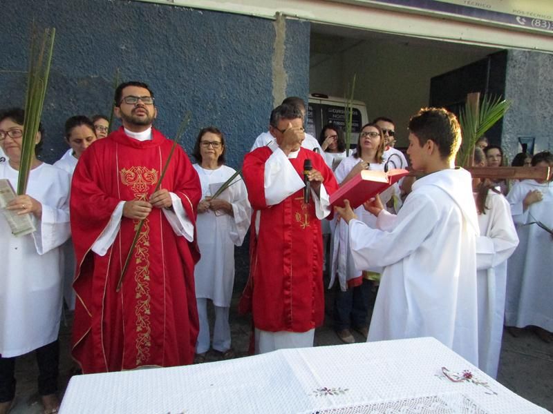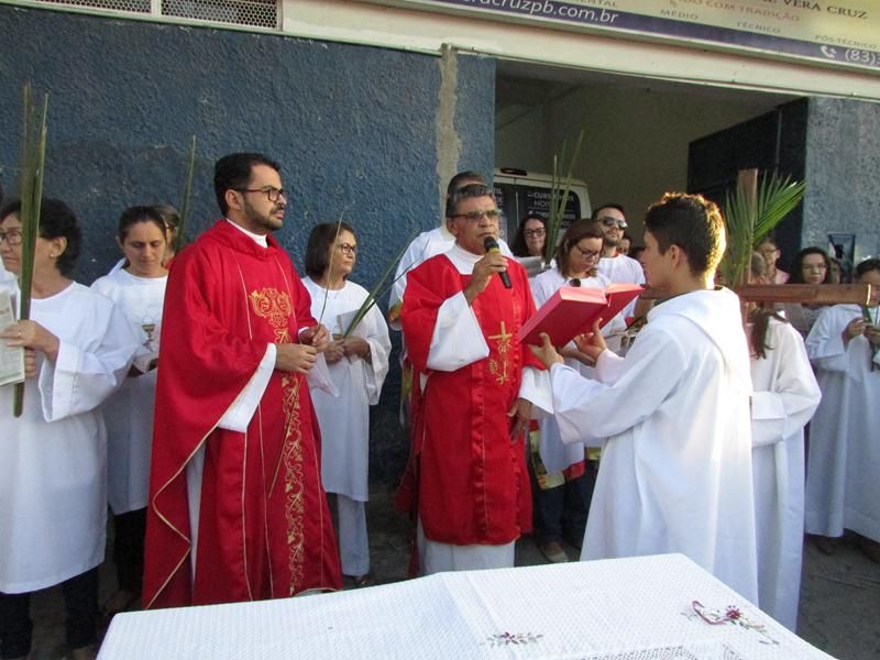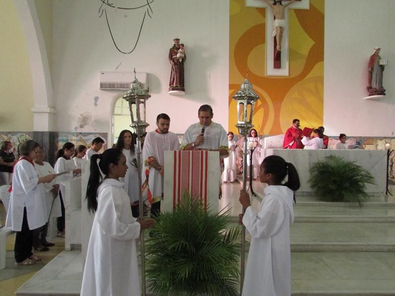Pontualmente as 06 horas da manhã de frente ao Instituto Educacional Vera Cruz Pe. Alixandre Pároco de Santo Antônio e Presidente da Celebração deu inicio a santa liturgia com a Benção dos Ramos, logo em seguida foi proclamado o Santo Evangelho pelo Diácono Roberto, que logo após a proclamação do evangelho Pe. Alixandre deu inicio a procissão que seguiu com todo a povo de Deus cantando e relembrando a entrada triunfal de Jesus em Jerusalém.