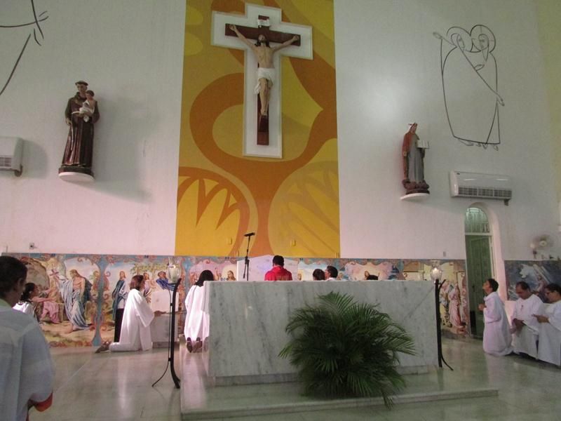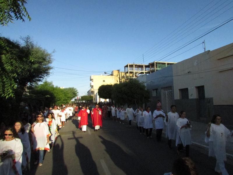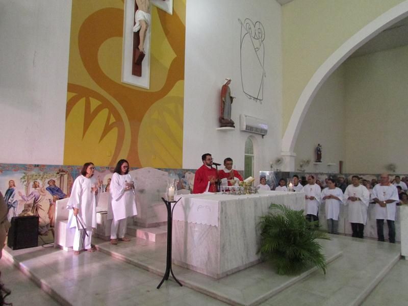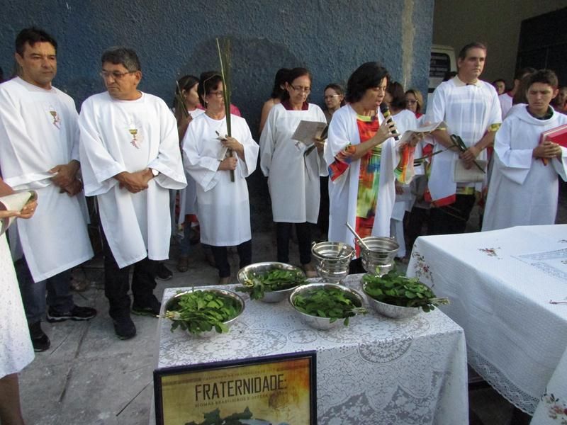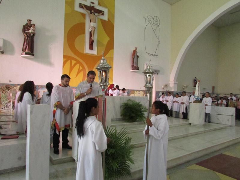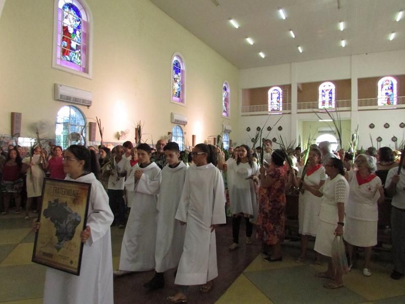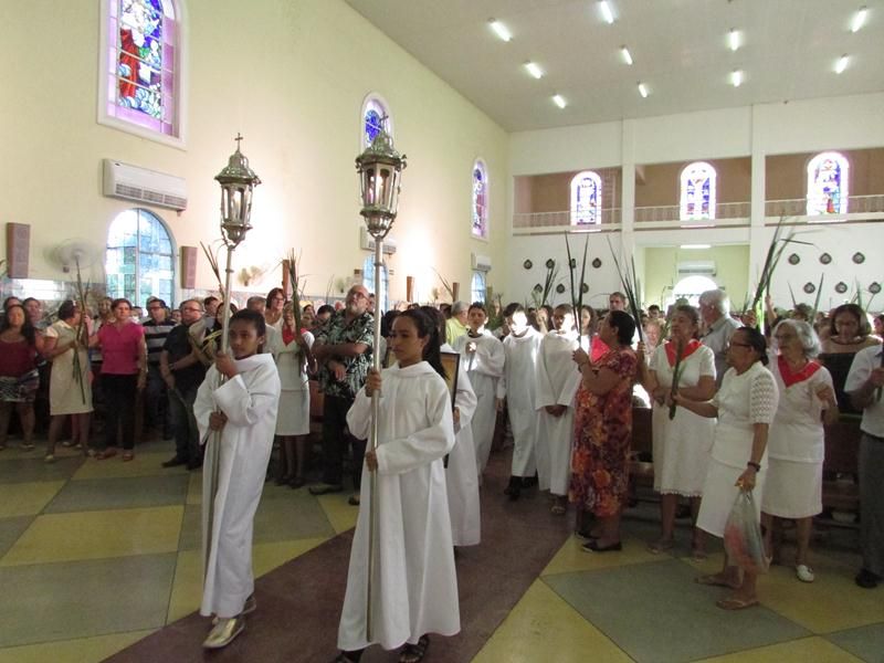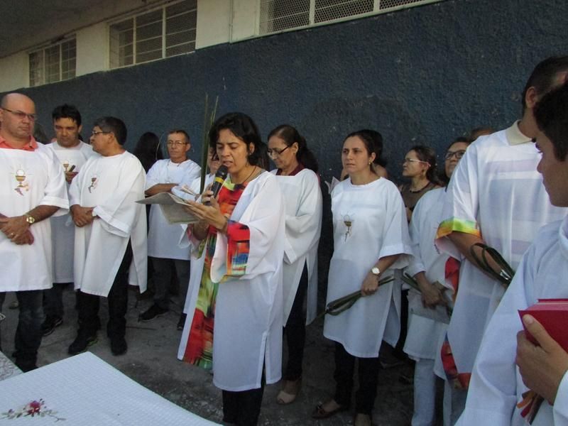 Pontualmente as 06 horas da manhã de frente ao Instituto Educacional Vera Cruz Pe. Alixandre Pároco de Santo Antônio e Presidente da Celebração deu inicio a santa liturgia com a Benção dos Ramos, logo em seguida foi proclamado o Santo Evangelho pelo Diácono Roberto, que logo após a proclamação do evangelho Pe. Alixandre deu inicio a procissão que seguiu com todo a povo de Deus cantando e relembrando a entrada triunfal de Jesus em Jerusalém.