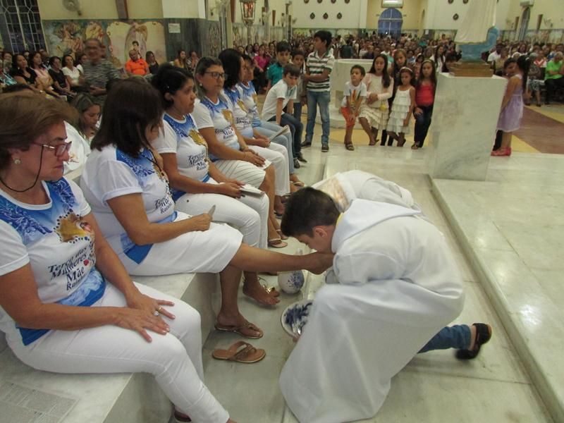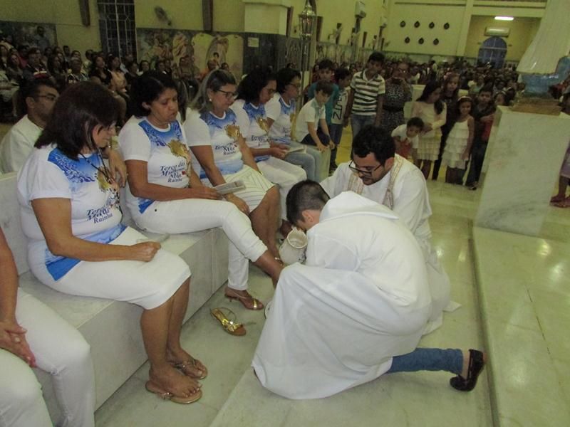 Em sua homilia o Pe. Alixandre acentuou as origens da Páscoa judaica, que em família rememoram a ação de Deus na libertação do povo da opressão do Egito, enfatizou a pascoa cristã que por meio do próprio Cristo torna um ato litúrgico de amor e doação, Jesus celebrou a última ceia, na qual nos deixou a Eucaristia, o sacerdócio ministerial colocando-se a serviço da vida, da esperança e do amor ao próximo, apontando para os sacerdotes o caminho a ser seguido, os chamando a fazer o mesmo gesto de entrega e doação amorosa no servir a comunidade. E o lava-pés nos mostra claramente como Jesus viveu sua missão de servir e não ser servido. Em seguida o Pe. Alixandre apresentou para a comunidade a relação simbólica do gesto do Lava Pés com o Ano Mariano em que membros dos movimentos marianos da comunidade matriz representam a vivência do mandamento do amor, no serviço e na partilha, como caminho de adesão a Jesus e ao projeto por ele iniciado.