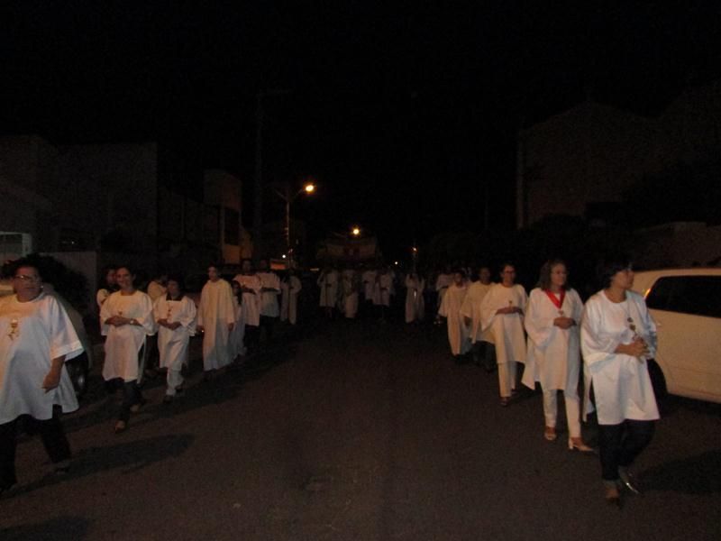 Ao final da celebração fomos convidados a acompanhar, em procissão, Jesus Eucarístico, transladando o Santíssimo Sacramento até o altar da reposição, onde realizaremos o nosso momento de vigília e adoração.