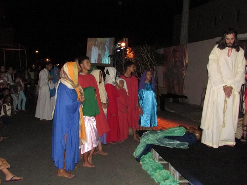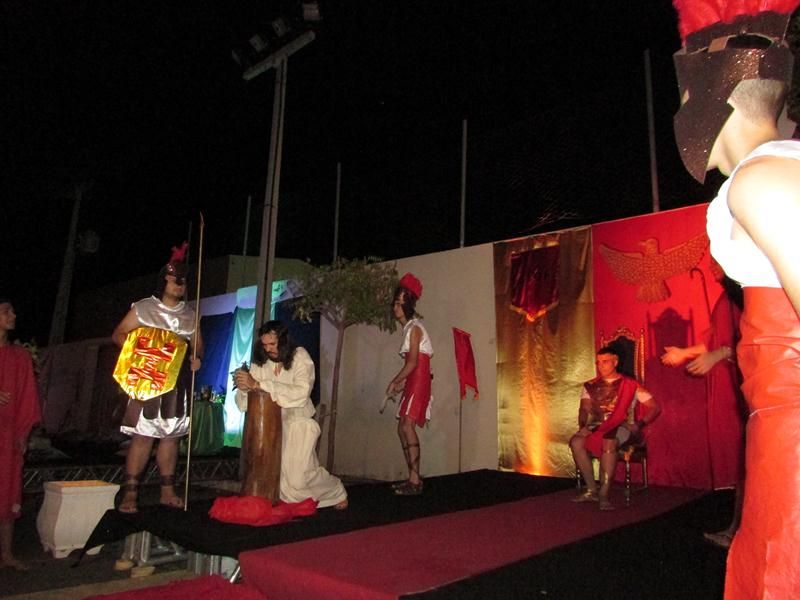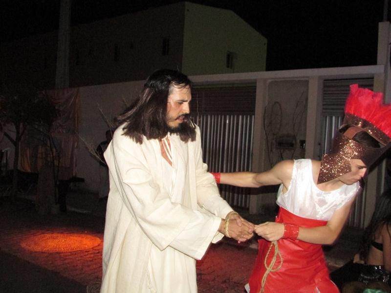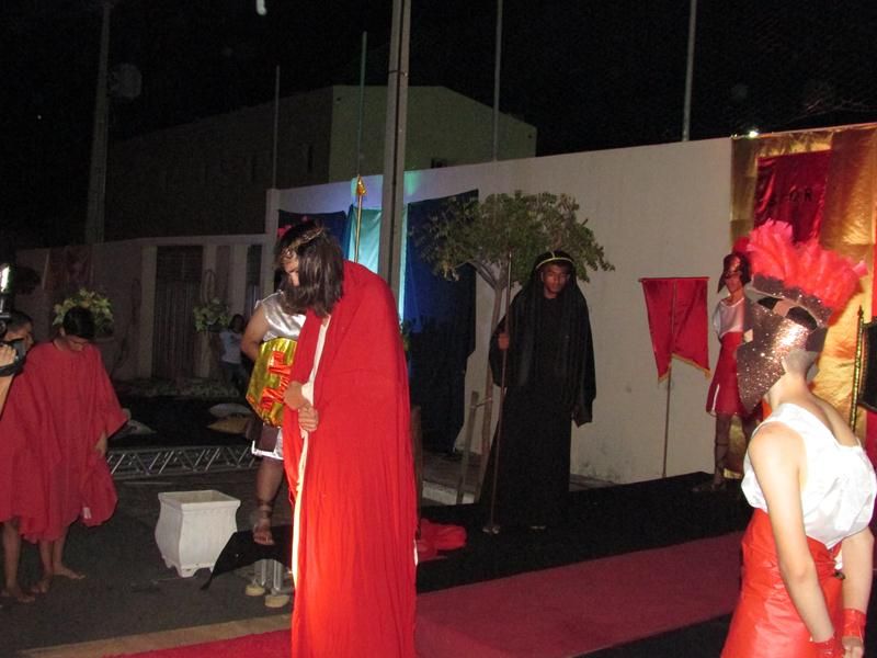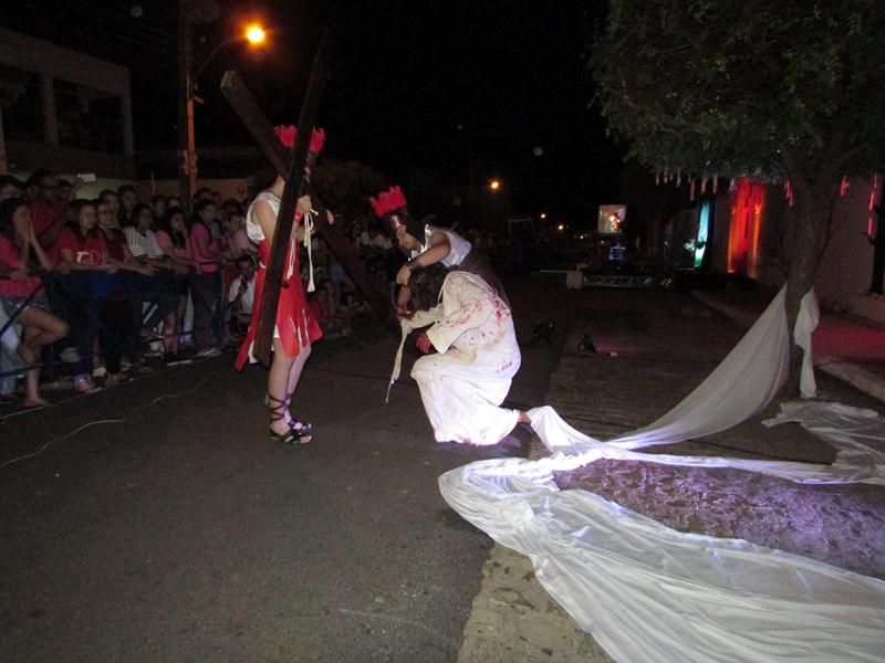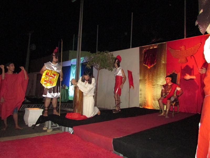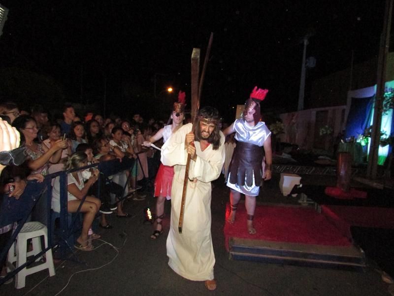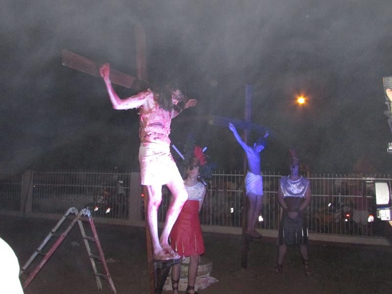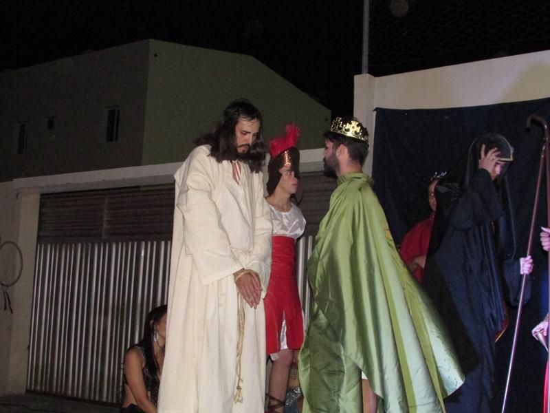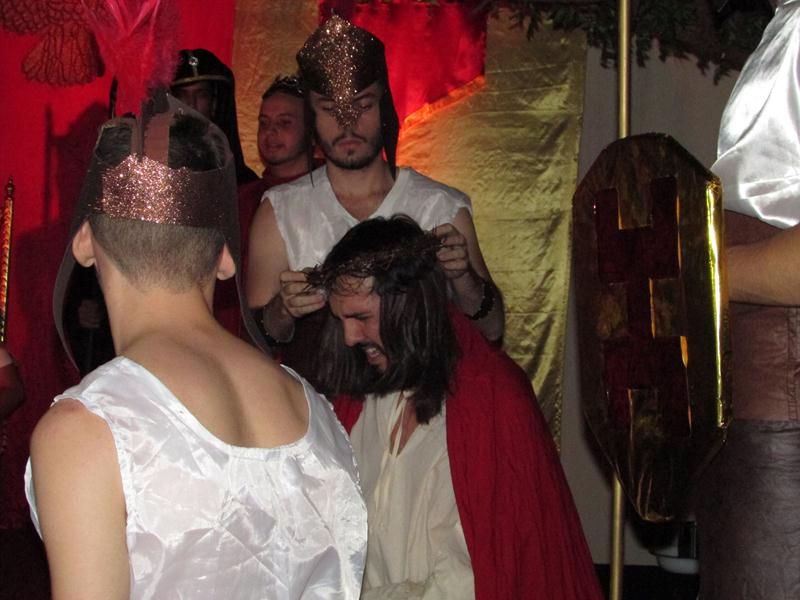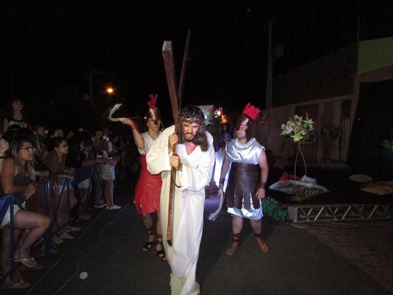 Pelo terceiro ano consecutivo jovens da pastoral crismal da Paróquia Santo Antônio encenam a Paixão de Cristo, que este ano contou com uma estrutura bem maior que a dos outros.