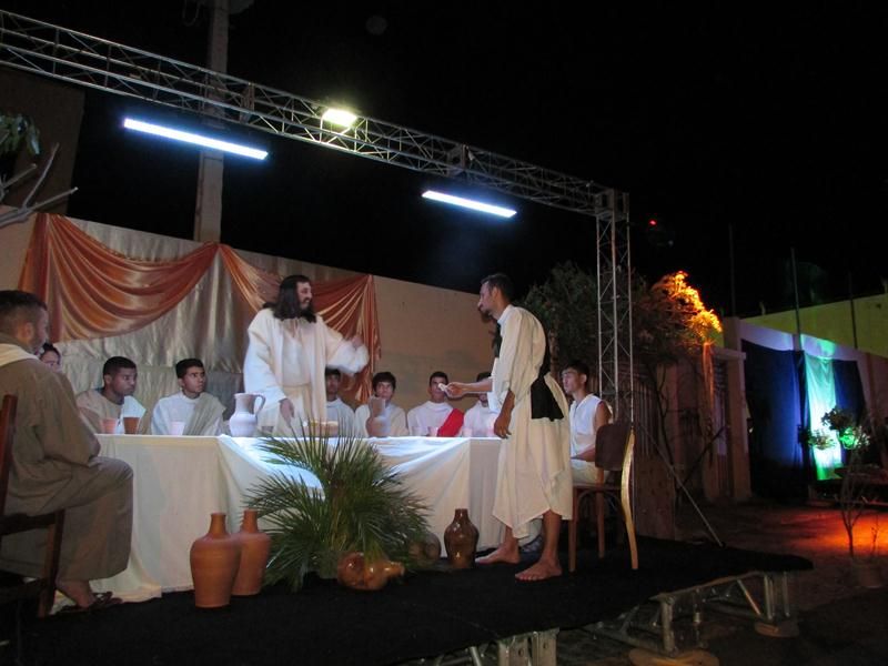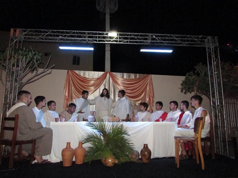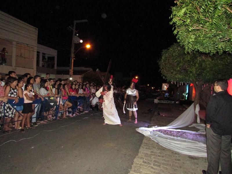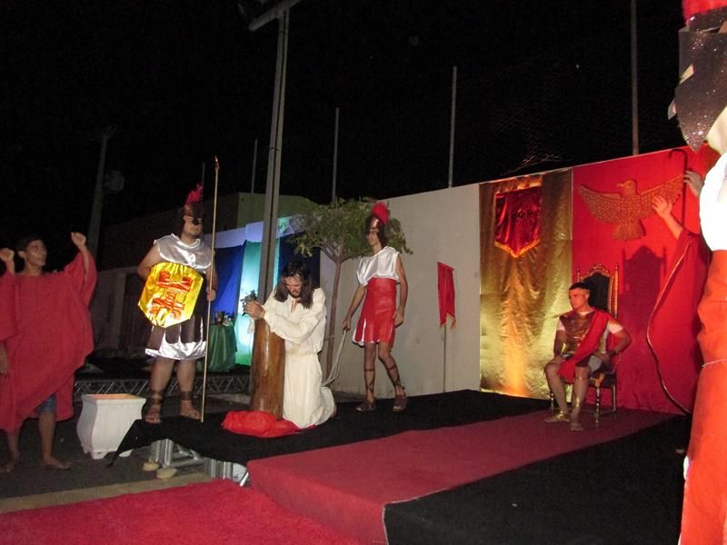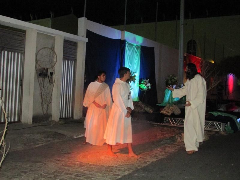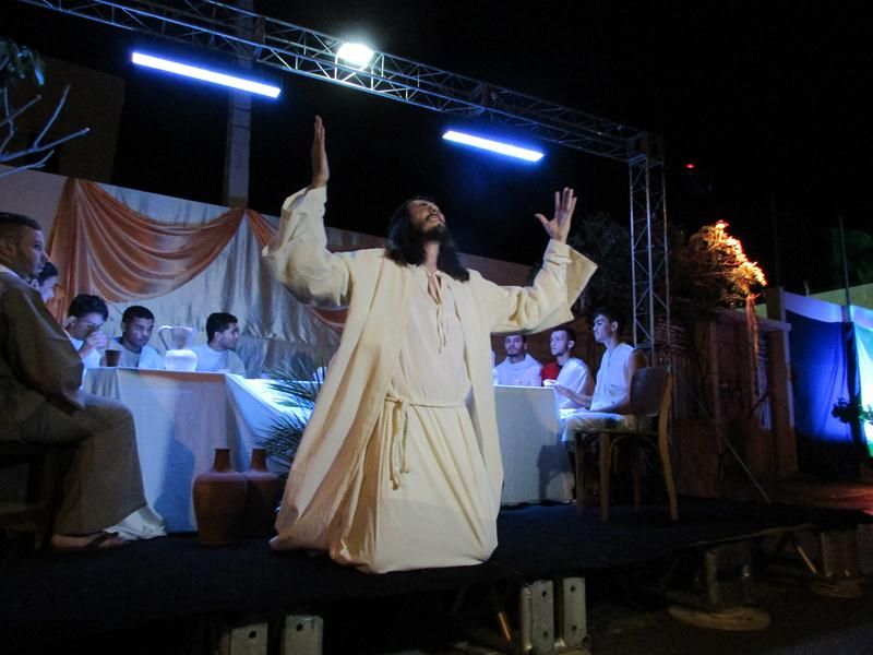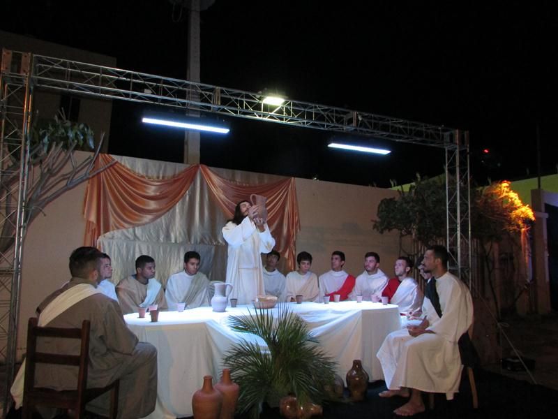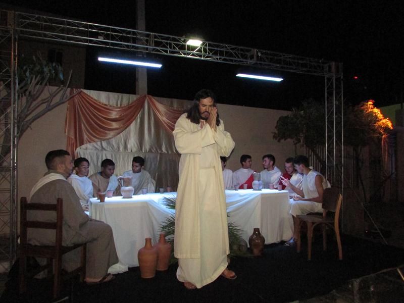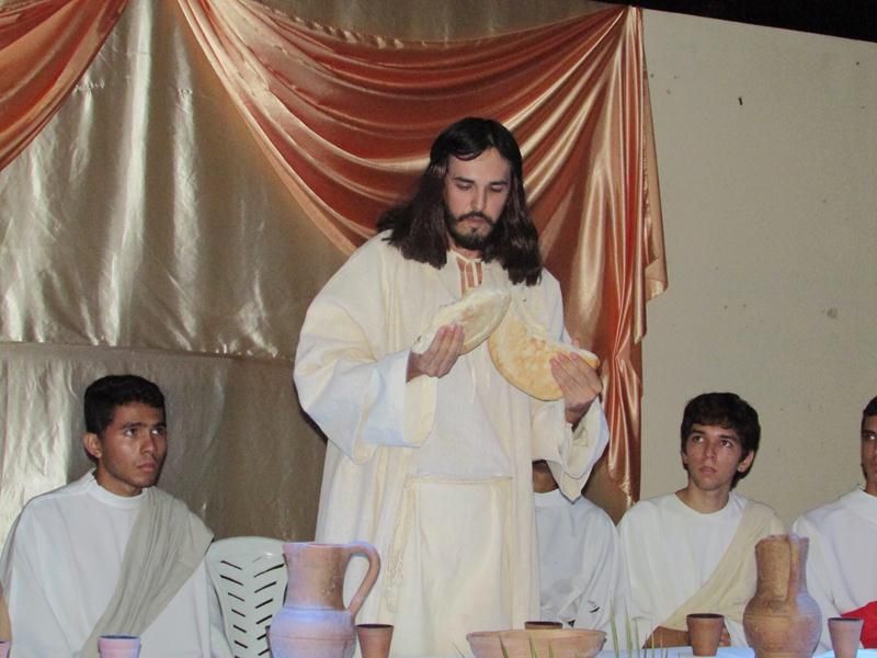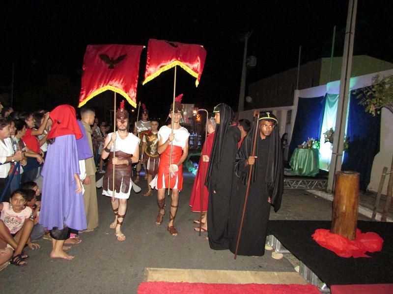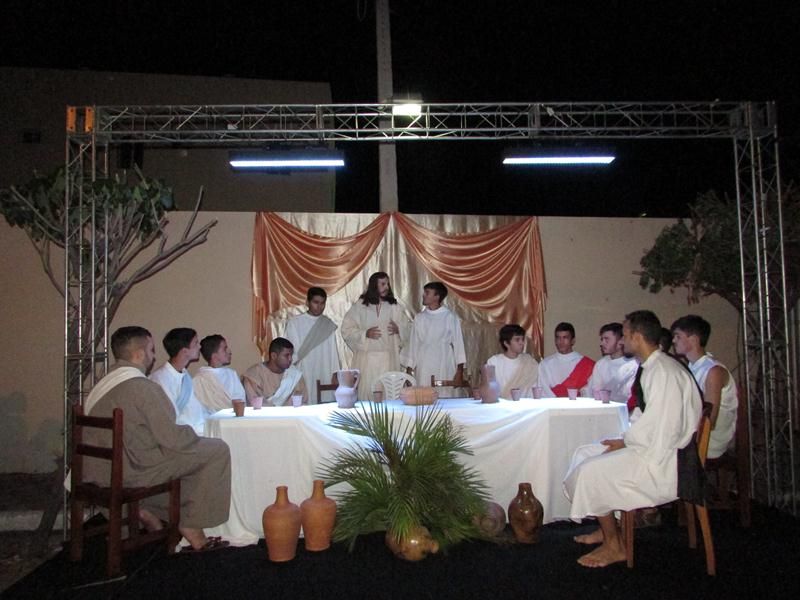 Pelo terceiro ano consecutivo jovens da pastoral crismal da Paróquia Santo Antônio encenam a Paixão de Cristo, que este ano contou com uma estrutura bem maior que a dos outros.