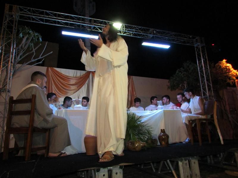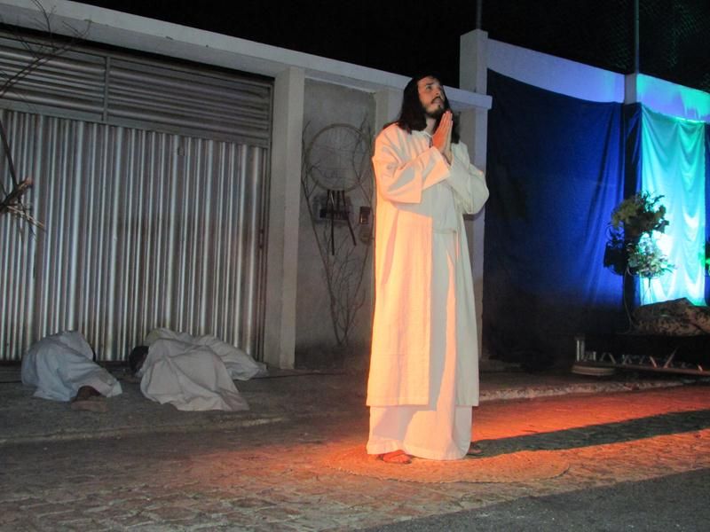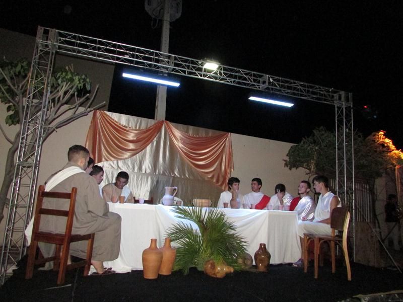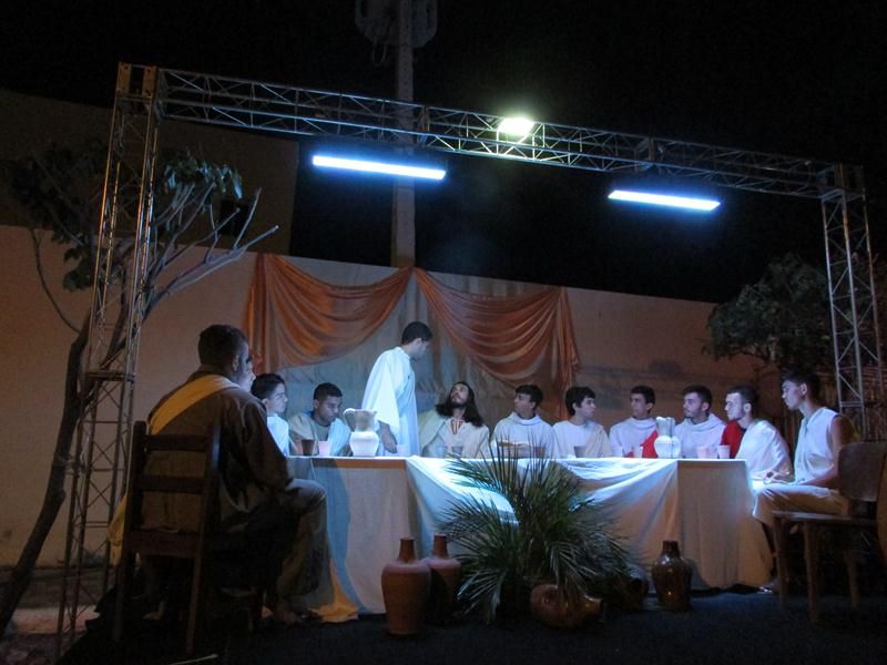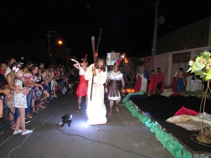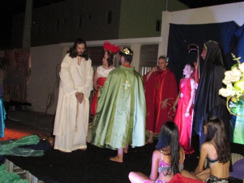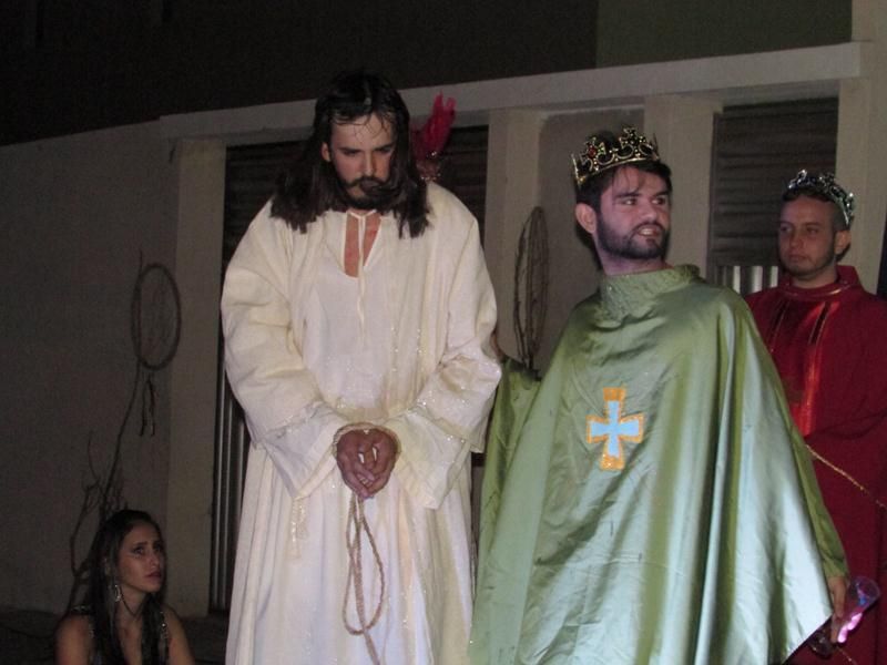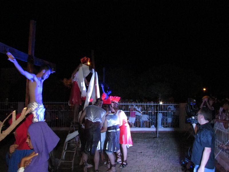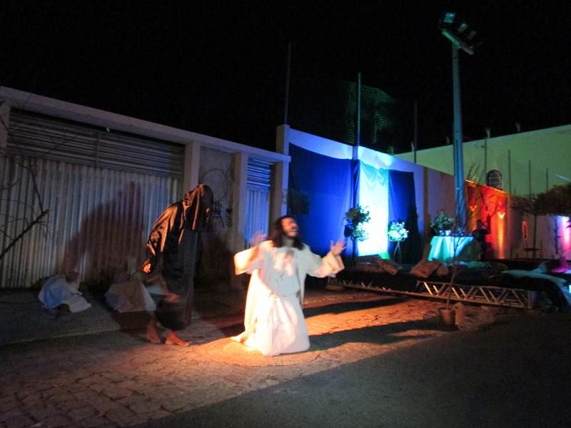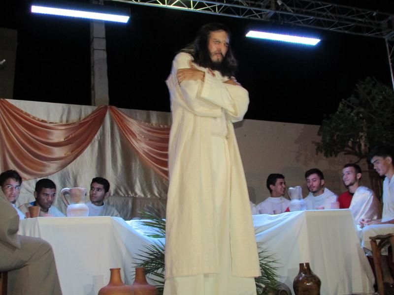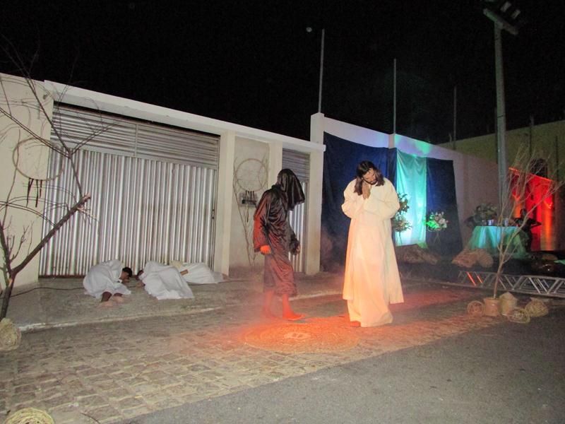 Pelo terceiro ano consecutivo jovens da pastoral crismal da Paróquia Santo Antônio encenam a Paixão de Cristo, que este ano contou com uma estrutura bem maior que a dos outros.