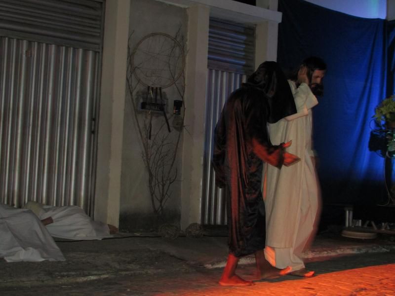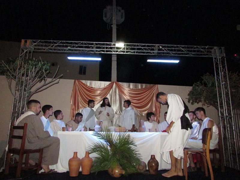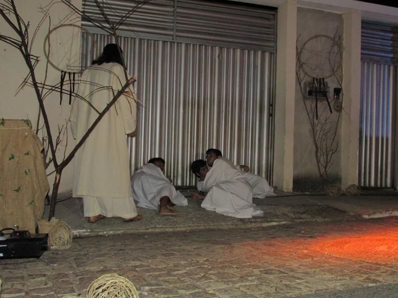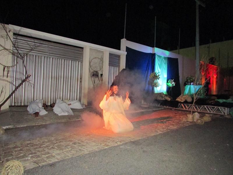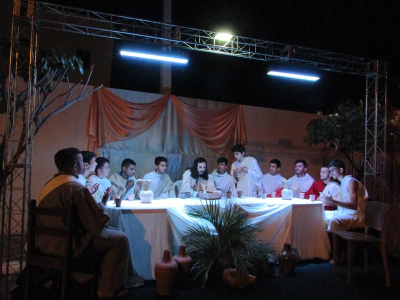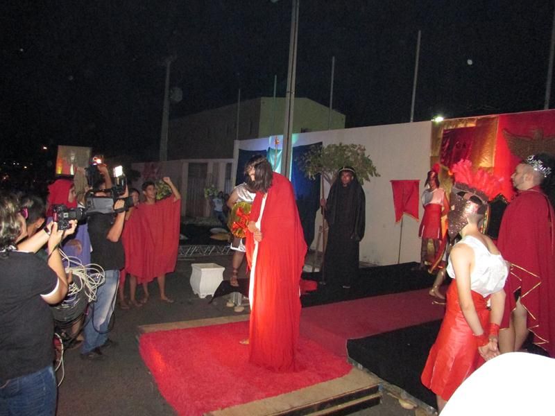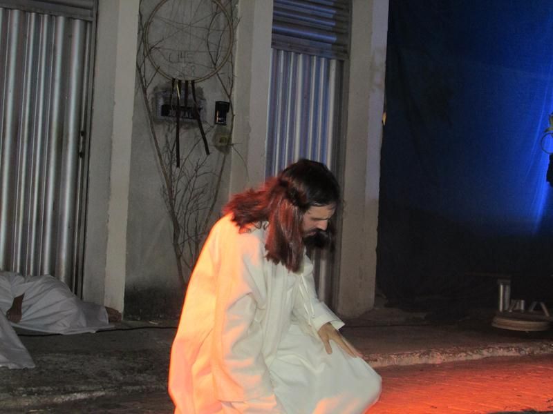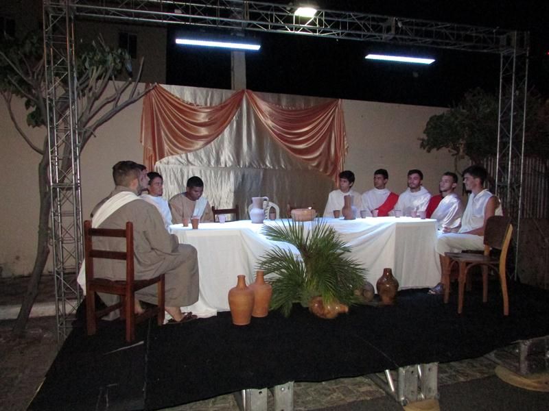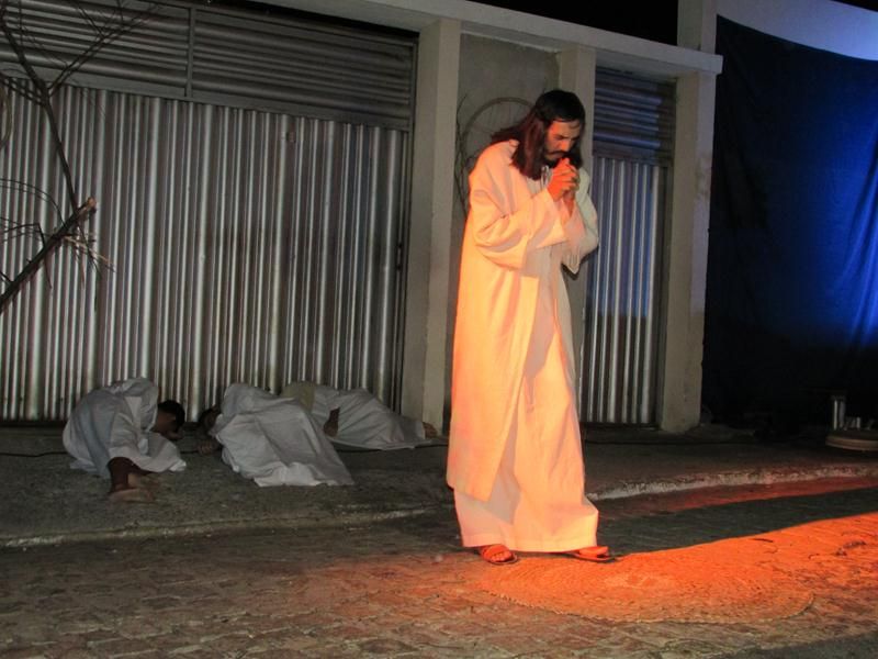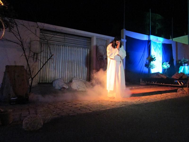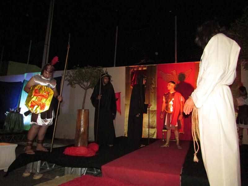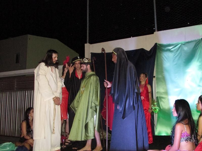 Pelo terceiro ano consecutivo jovens da pastoral crismal da Paróquia Santo Antônio encenam a Paixão de Cristo, que este ano contou com uma estrutura bem maior que a dos outros.