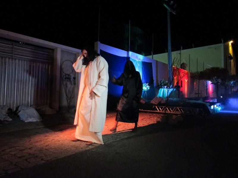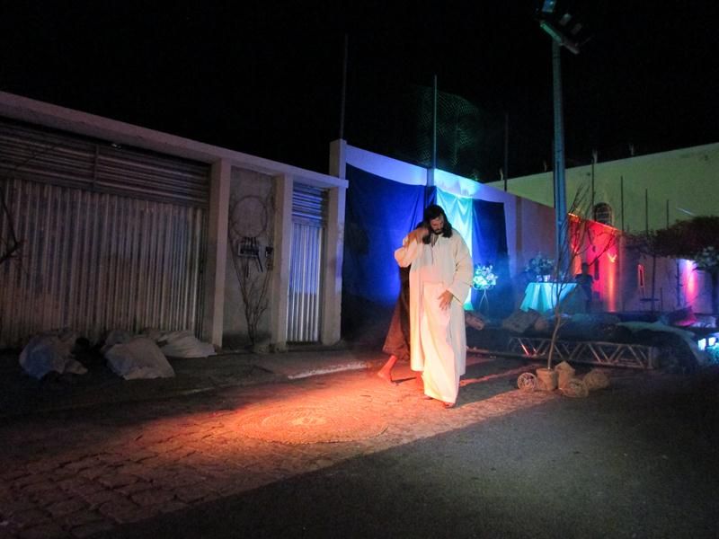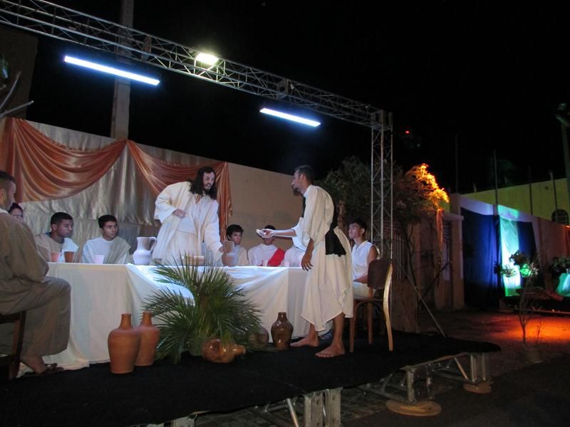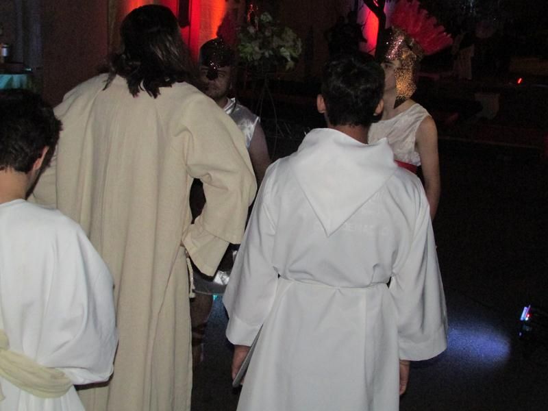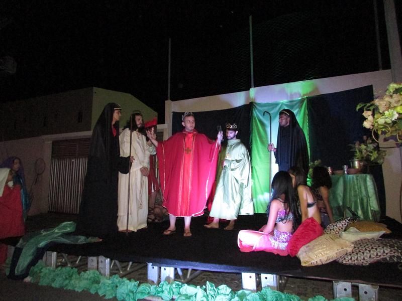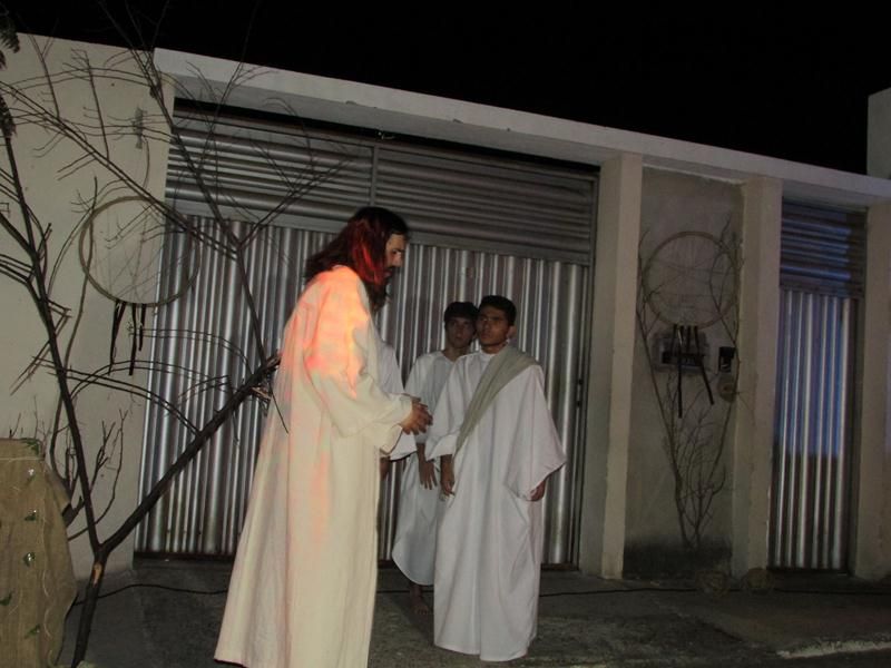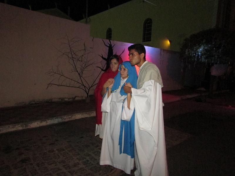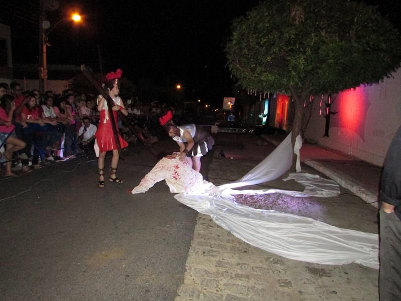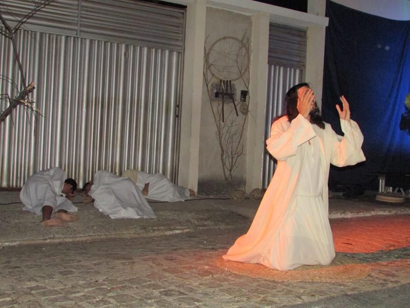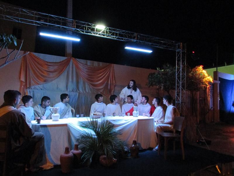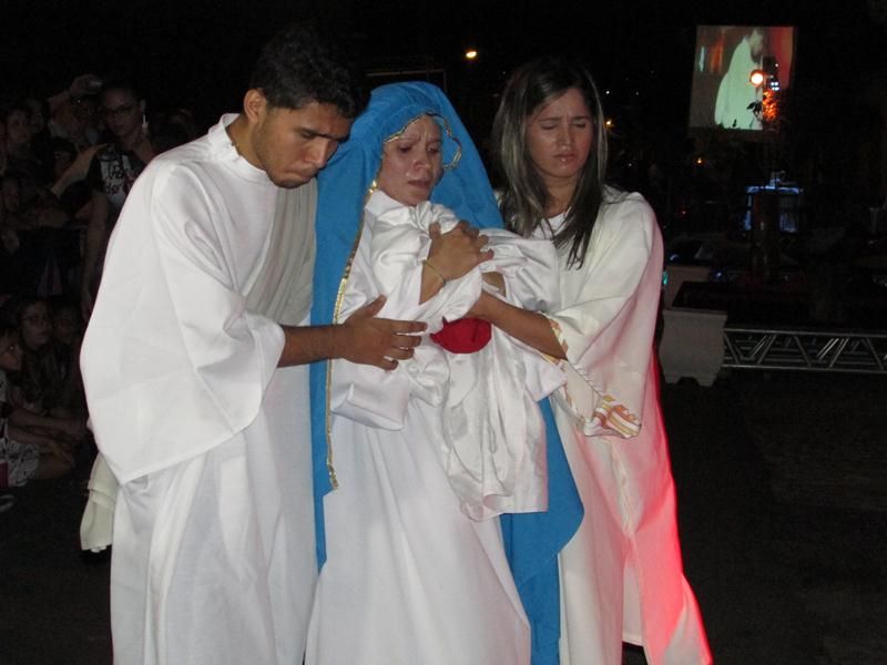 Pelo terceiro ano consecutivo jovens da pastoral crismal da Paróquia Santo Antônio encenam a Paixão de Cristo, que este ano contou com uma estrutura bem maior que a dos outros.