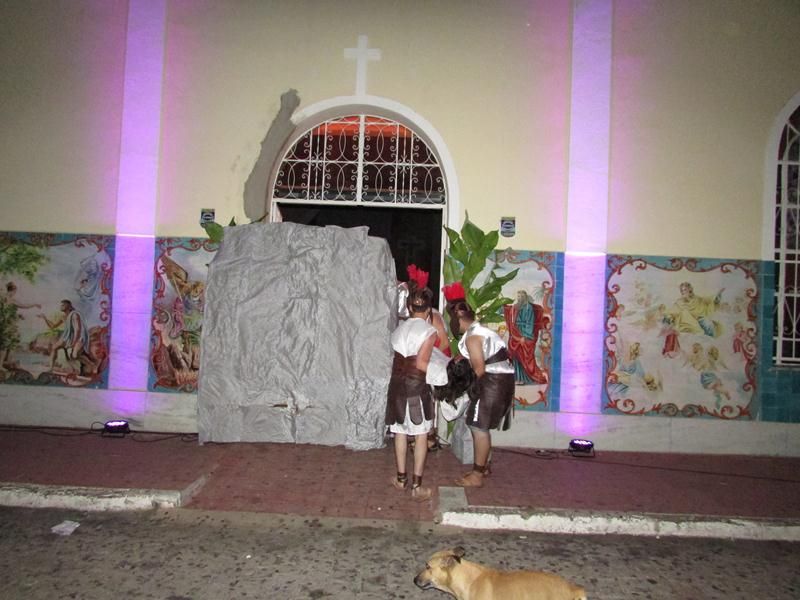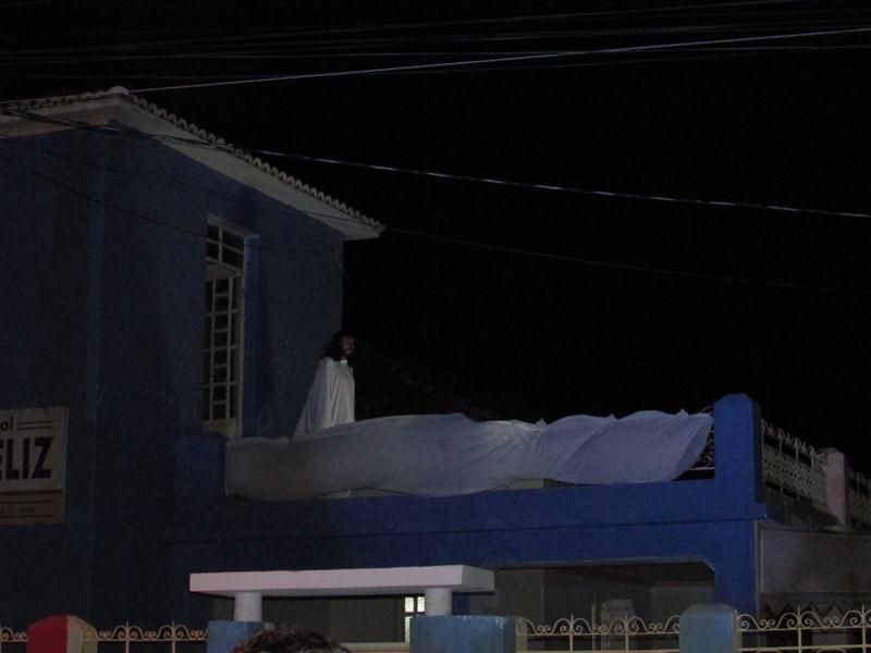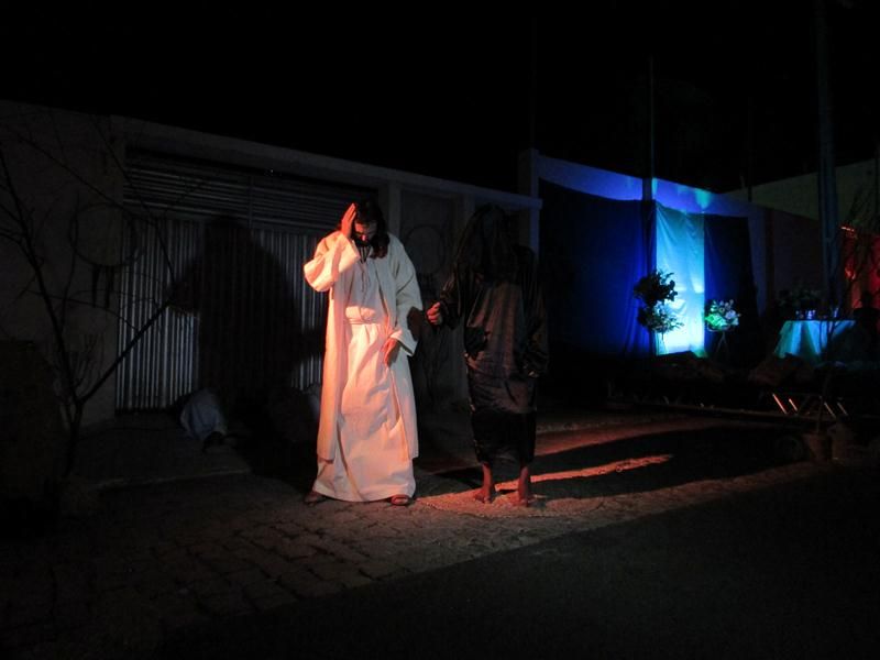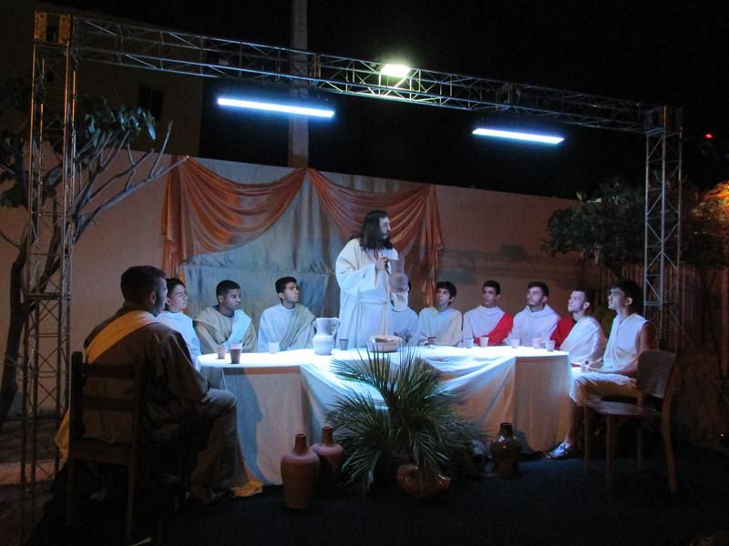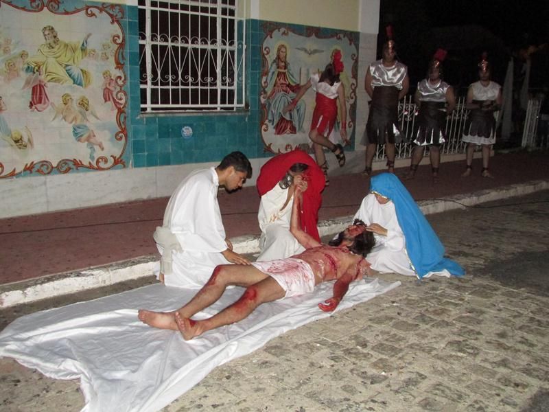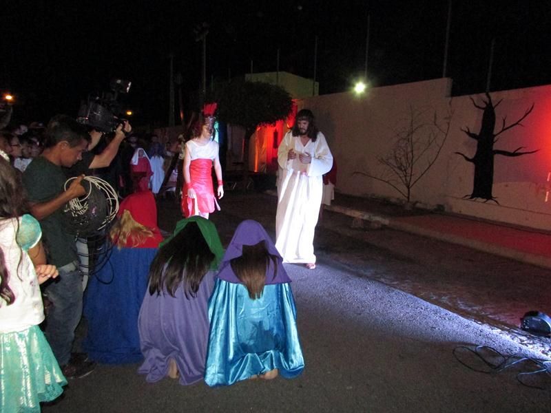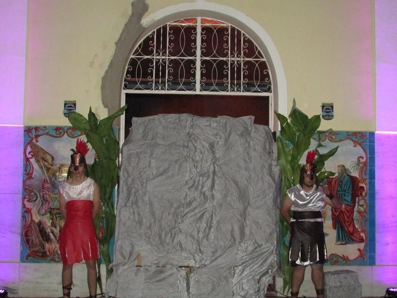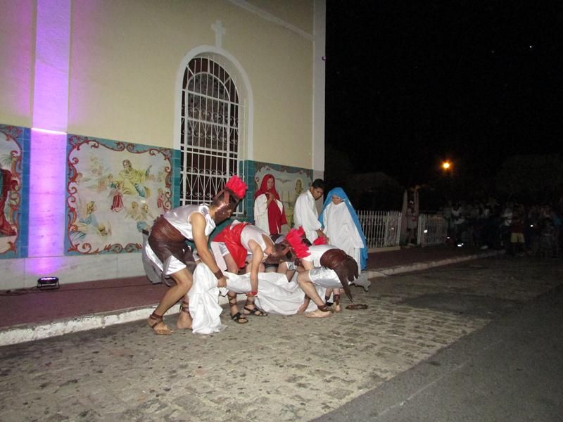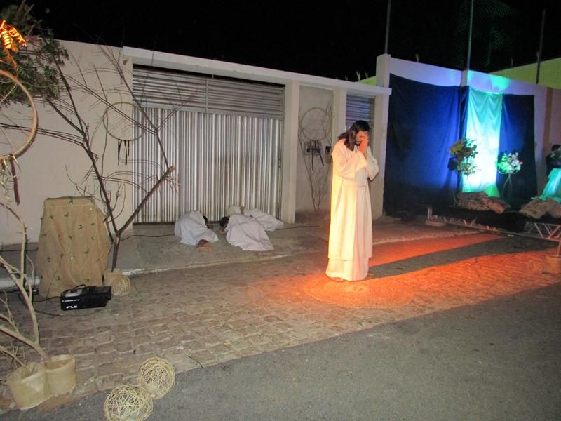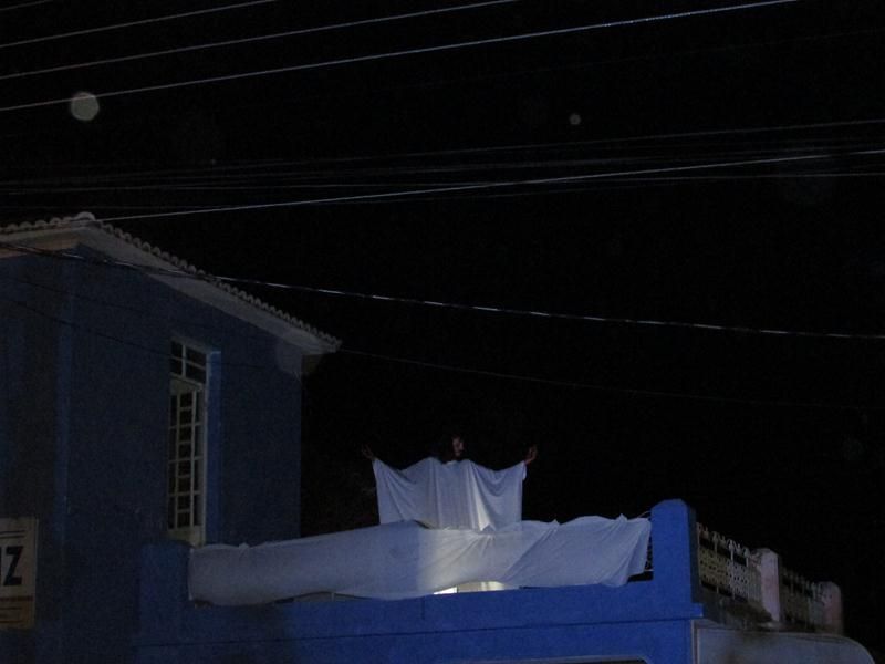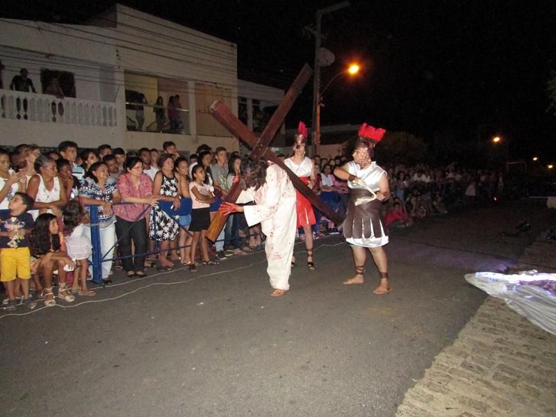Pelo terceiro ano consecutivo jovens da pastoral crismal da Paróquia Santo Antônio encenam a Paixão de Cristo, que este ano contou com uma estrutura bem maior que a dos outros.