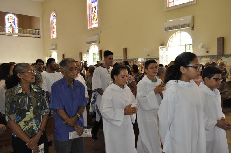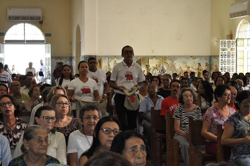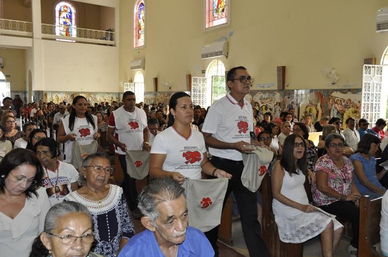A celebração Eucaristica teve inicio às 07h00min da manhã com a Igreja dendo um grande número de dizimistas que vieram de todas as comunidades que fazem parte da Paróquia, logo após a invocação da trindade santa, Pe. Alixandre saudou a todos os dizimistas agradecendo a fidelidade de cada dizimista.