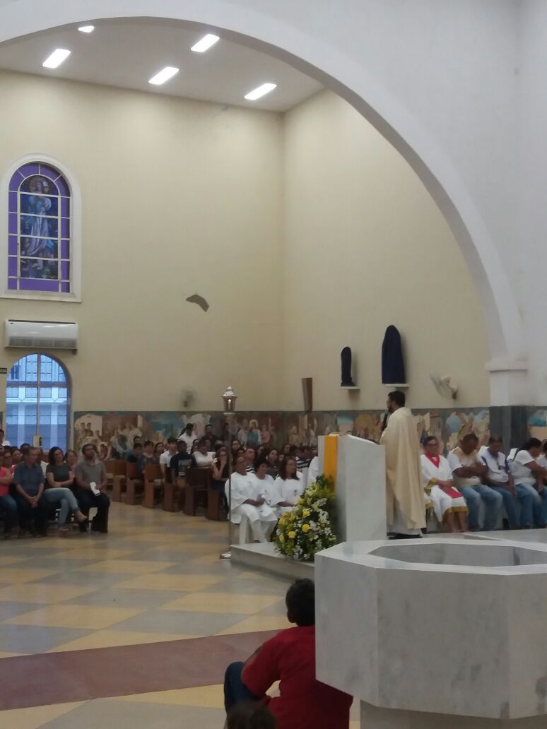 Pontualmente ás 17hs a Celebração Liturgia deu inicio sendo Presidida por Pe. Alixandre que em sua homilia enfatizou a quem devemos servir com amor e misericorsia porque Deus é rico em misericordia..