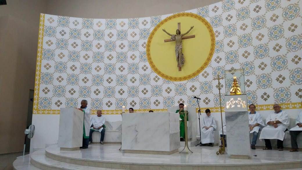 O Pe. Alixandre Soares presidiu a Santa Missa, que foi concelebrada pelo Diácono Gildenor, que é o Coordenador Diocesano do Movimento.