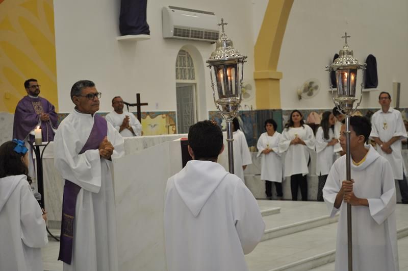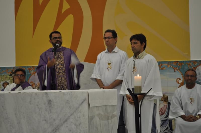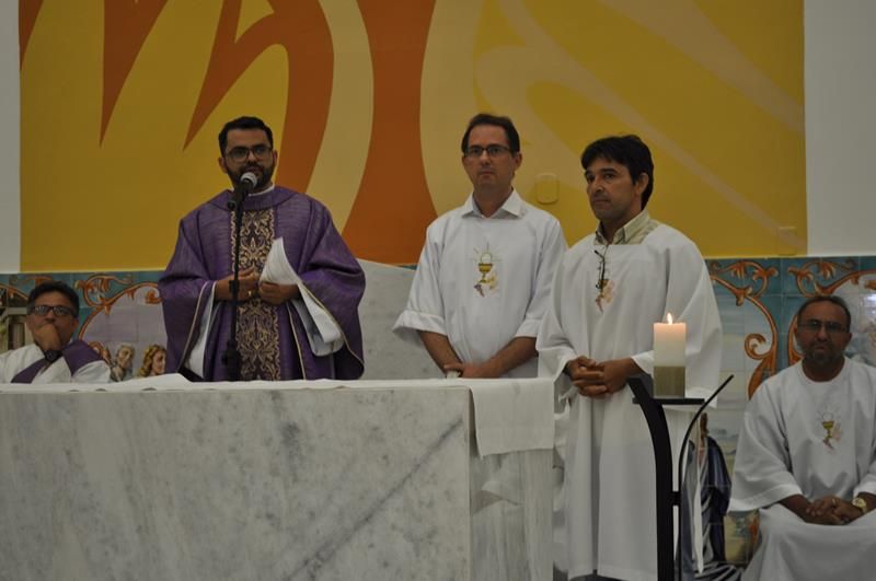 Concelebraram está Celebração Eucaristica Pe. Alixandre Pároco de Santo Antônio, Pe. Cláudio Oliveira, os Diáconos Permanentes Roberto e Rossini